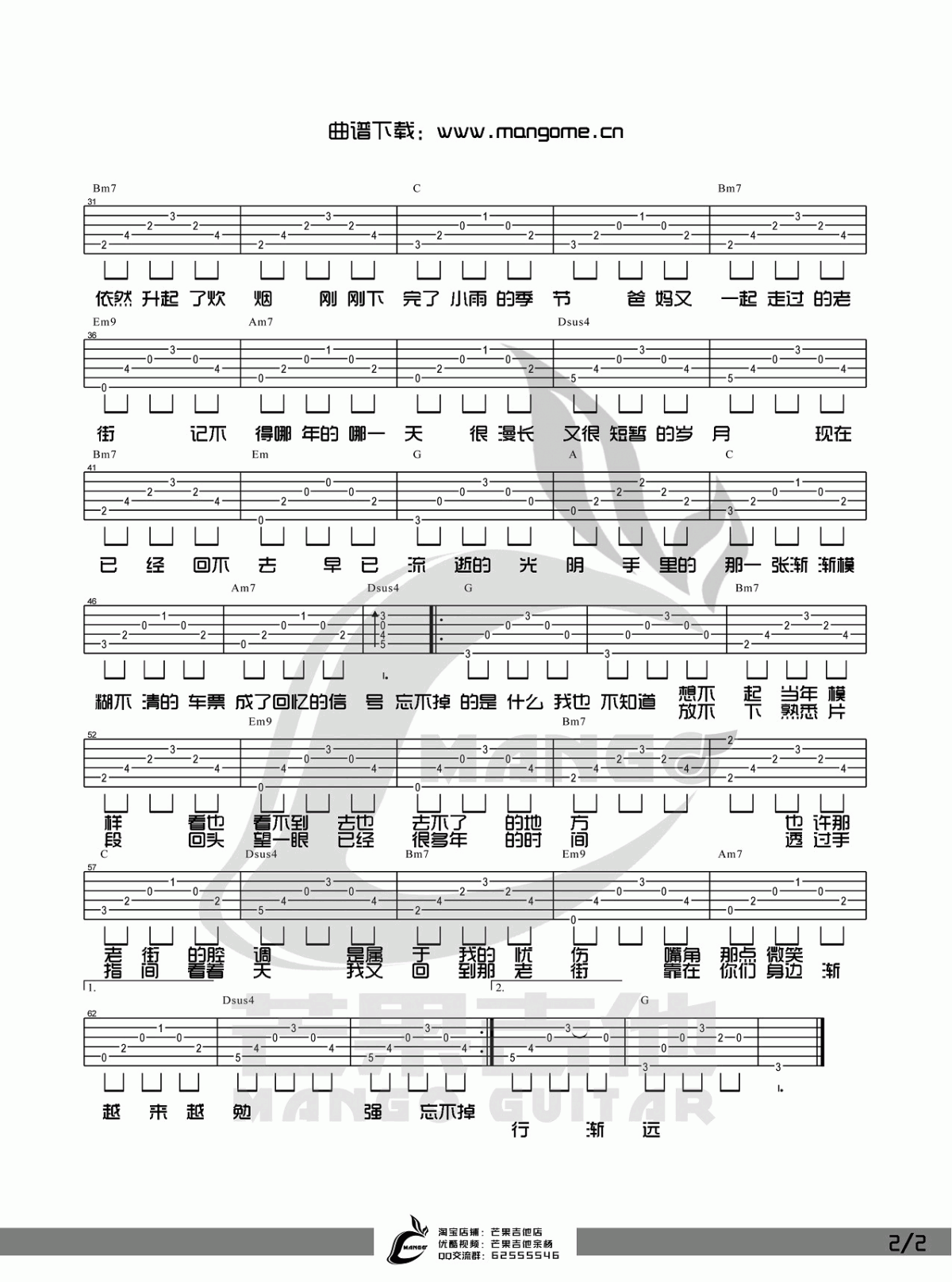 曲谱介绍: 李荣浩《老街》吉他弹唱谱,采用G调指法编配,共有2张高清图谱,免翻页排版设计。