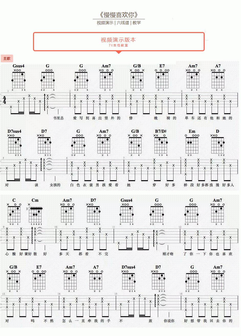 当前位置:琴谱网>吉他弹唱>慢慢喜欢你