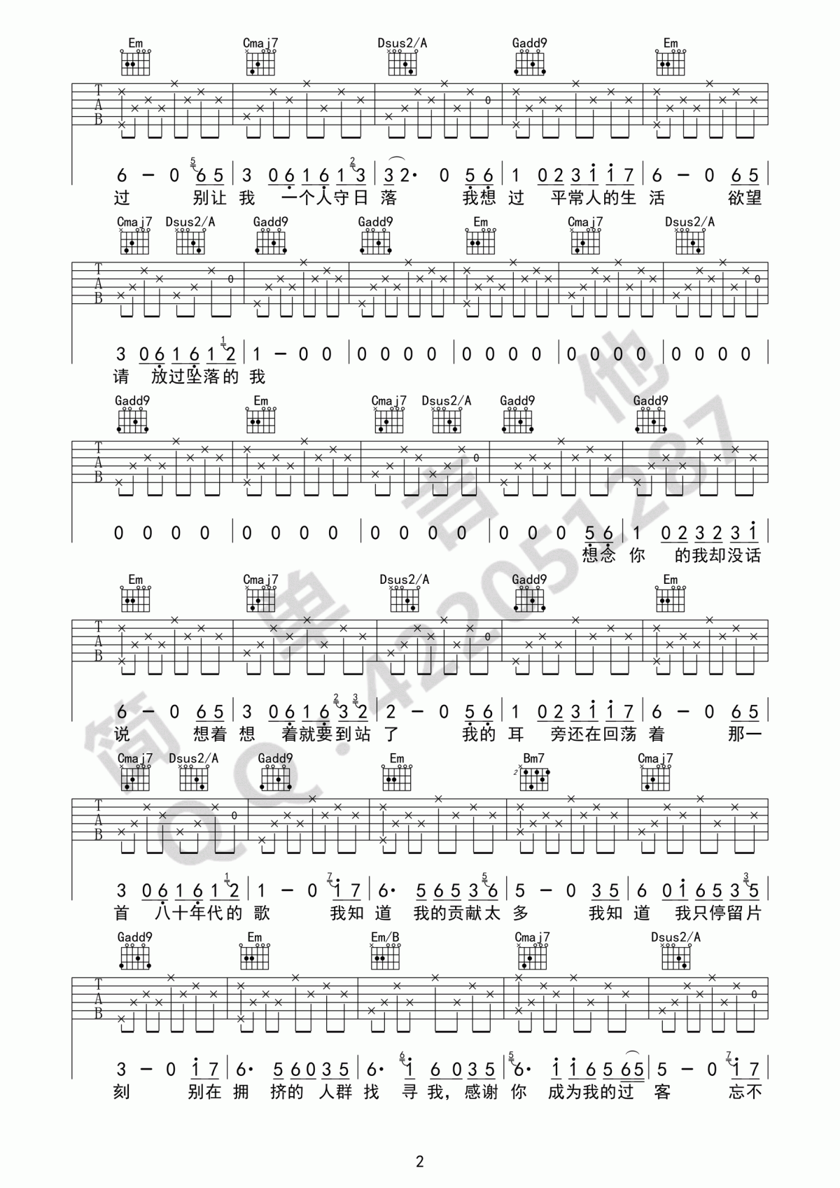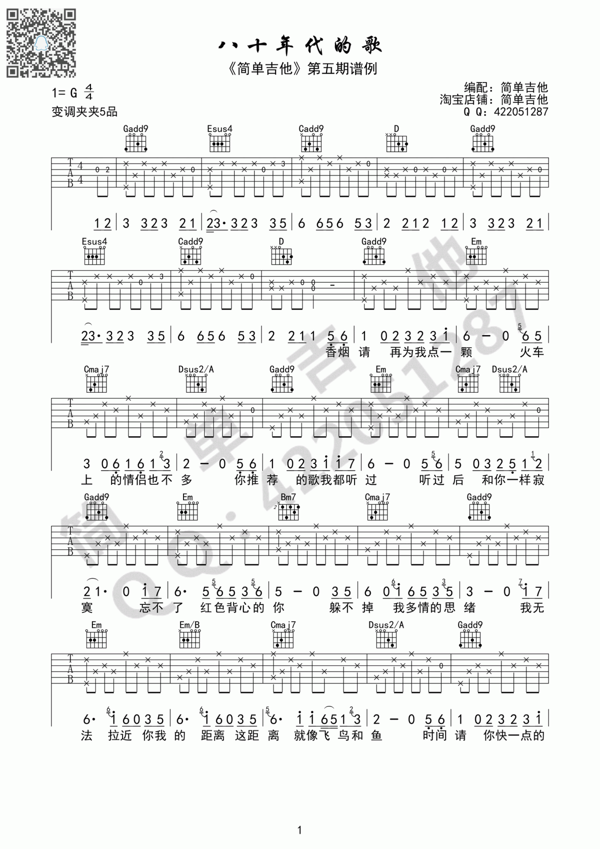 曲谱介绍: 《八十年代的歌》吉他弹唱谱,采用A调指法编配,共有3张高清图谱。
