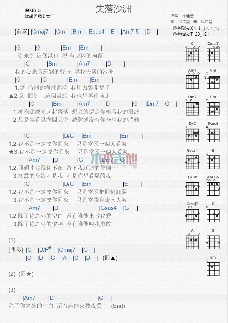 当前位置:琴谱网>吉他弹唱>失落沙洲图片