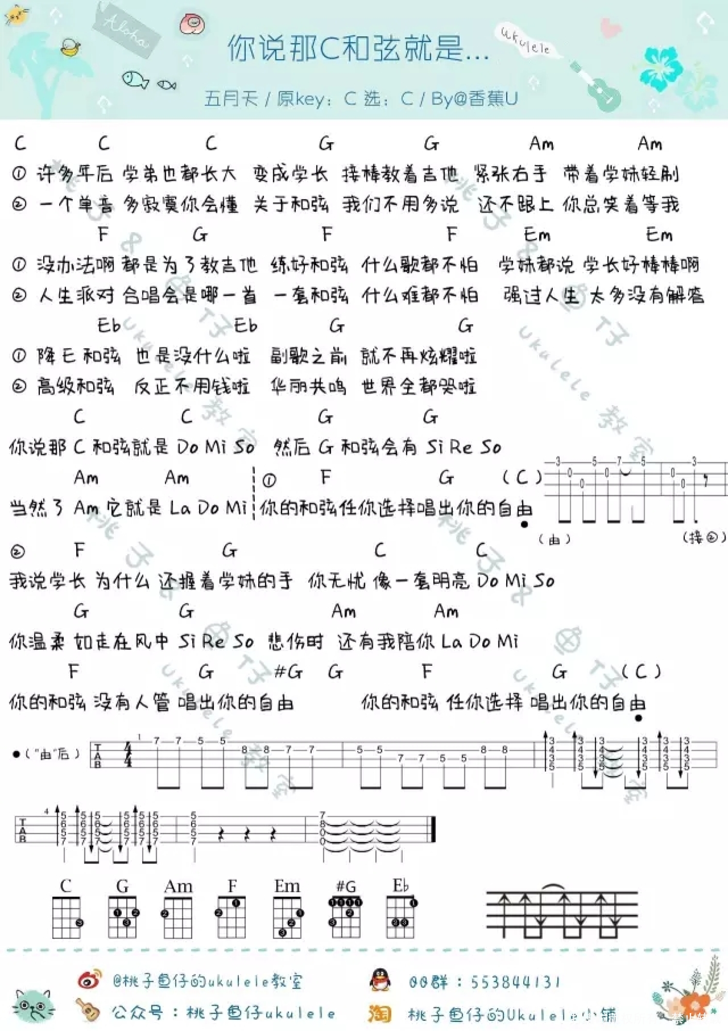 曲谱介绍: 五月天《你说那C和弦就是》_C调尤克里里谱