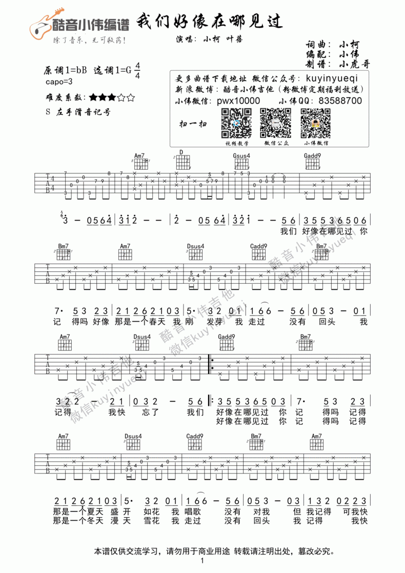 曲谱介绍: 我们好像在哪见过《我们好像在哪见过_G调》吉他弹唱谱,采用G调指法编配,共有2张高清图谱,免翻页排版设计。