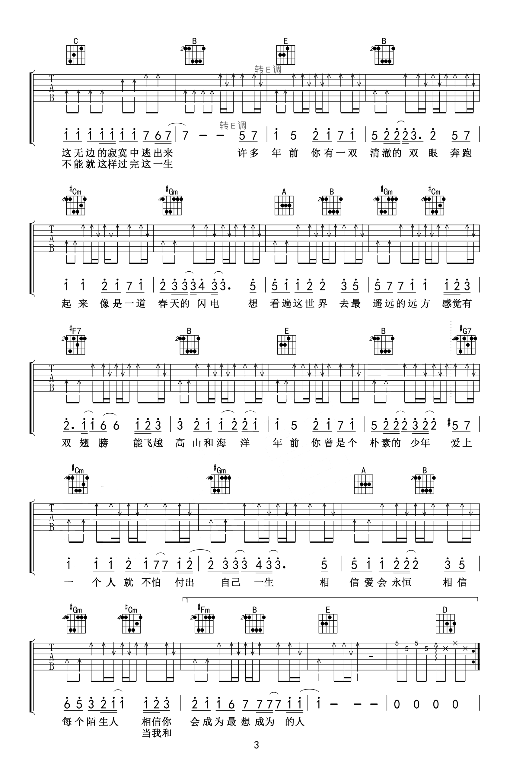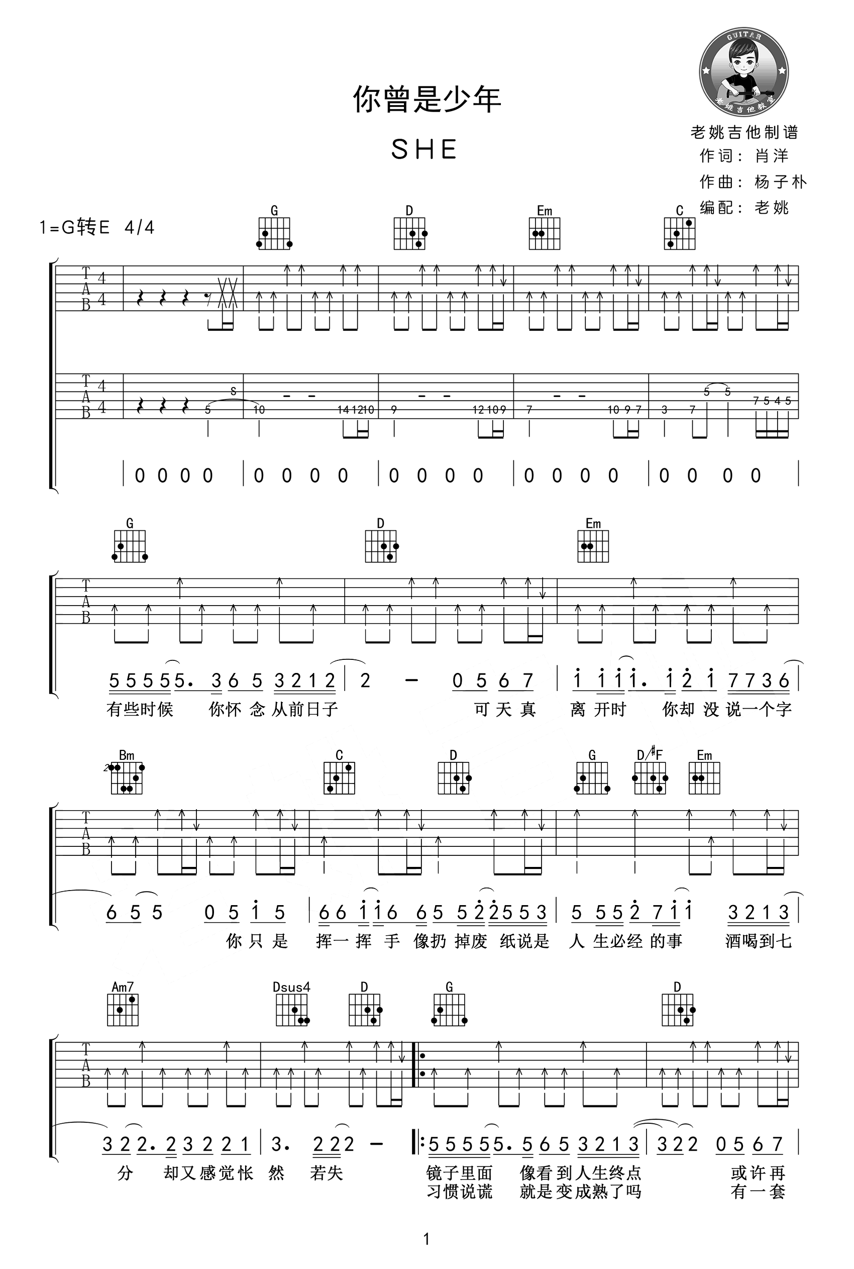 曲谱介绍: SHE《你曾是少年》吉他弹唱谱,采用G调指法编配,共有5张高清图谱。