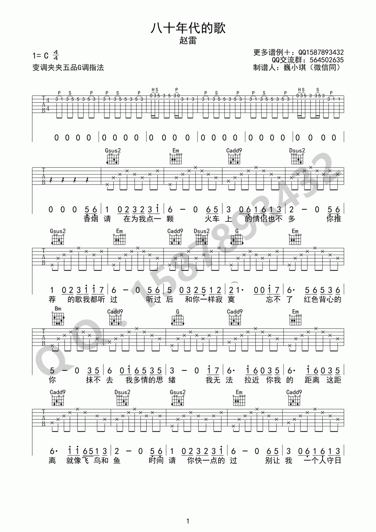 八十年代的歌吉他谱 - G调吉他弹唱谱