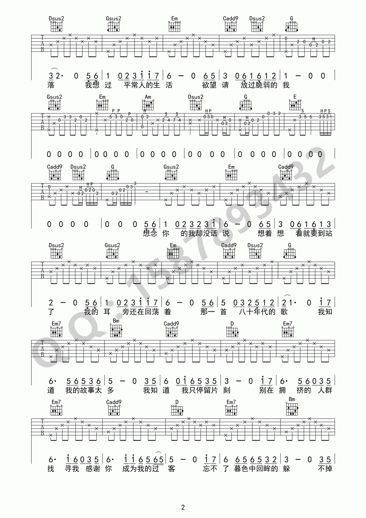 曲谱介绍: 《八十年代的歌》吉他弹唱谱,采用G调指法编配,共有3张高清图谱。