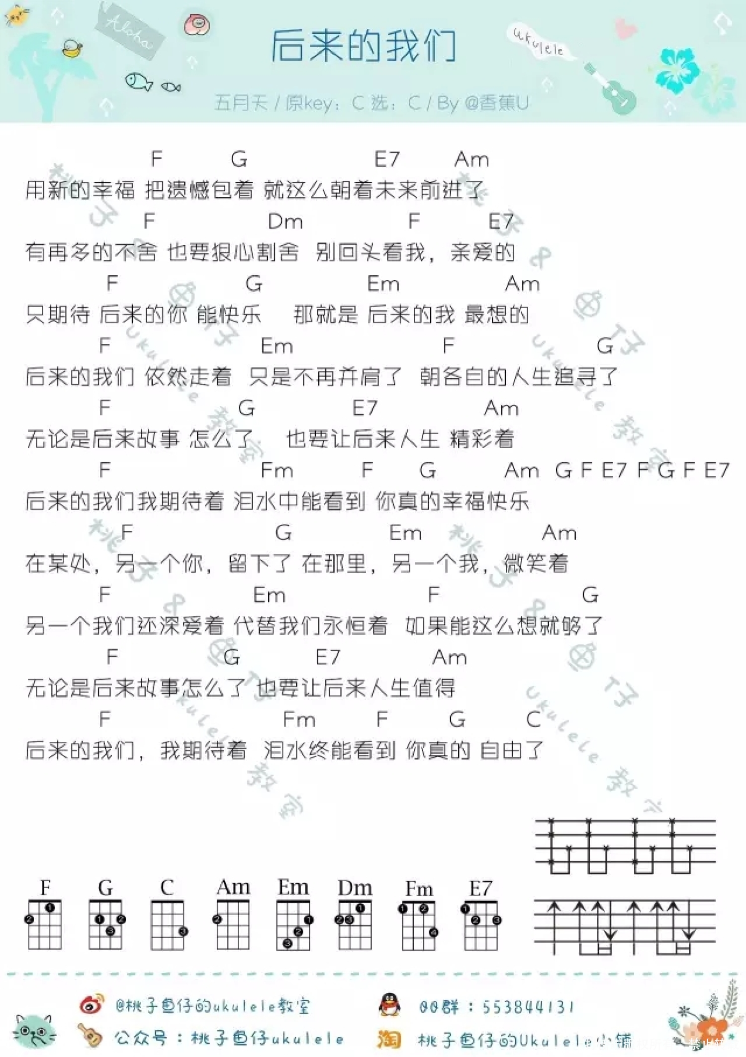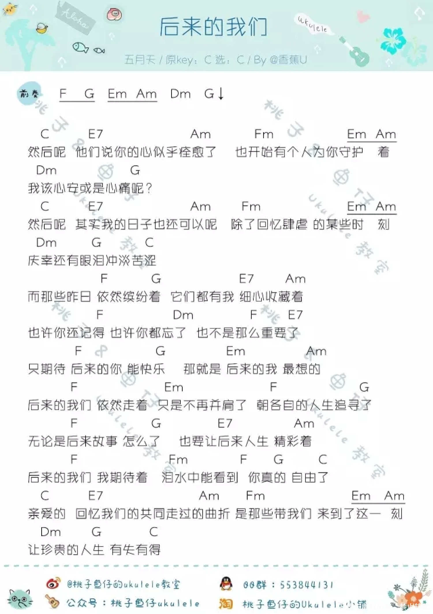 曲谱介绍: 五月天《后来的我们》_C调尤克里里谱