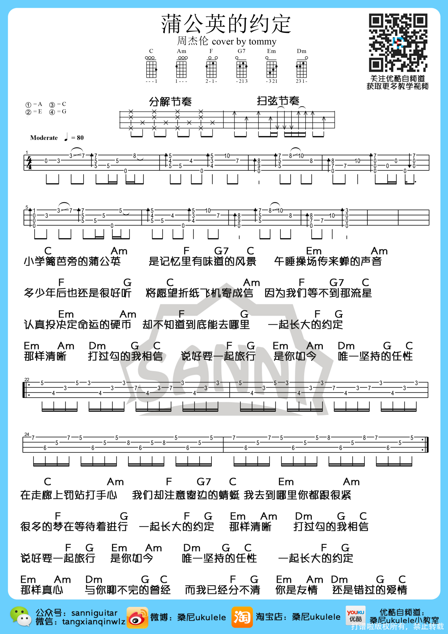 曲谱介绍: 周杰伦《蒲公英的约定》_C调尤克里里谱