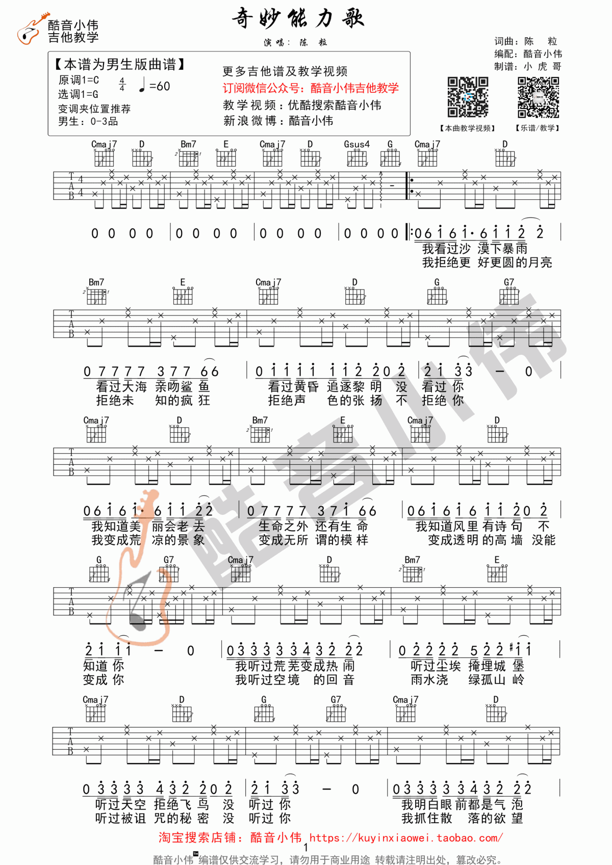 当前位置:琴谱网>吉他弹唱>奇妙能力歌