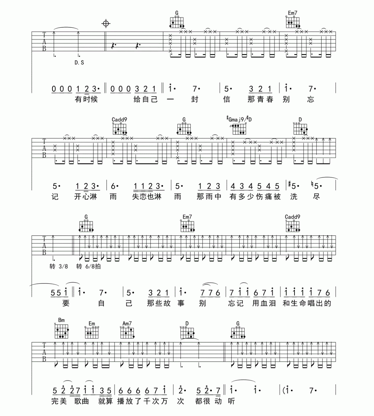 当前位置:琴谱网>吉他弹唱>给自己