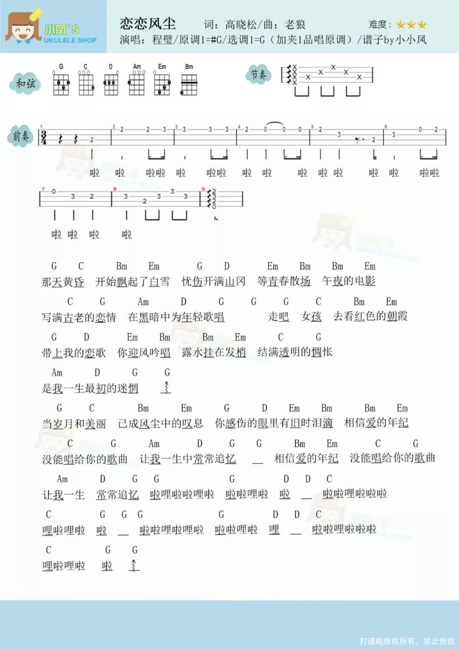 曲谱介绍: 老狼《恋恋风尘》_G调尤克里里谱