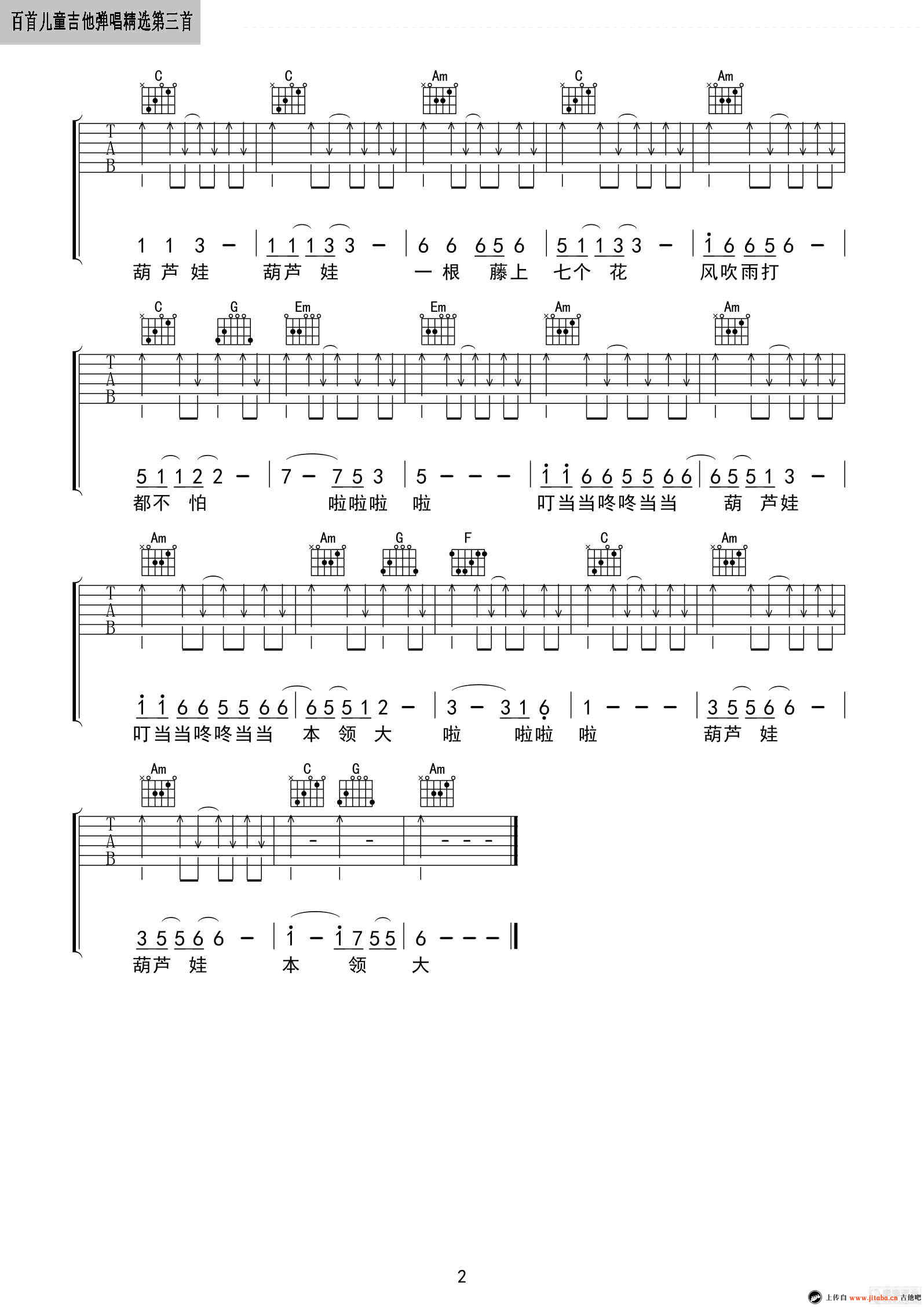 葫芦娃吉他谱 - 儿歌 - C调吉他弹唱谱