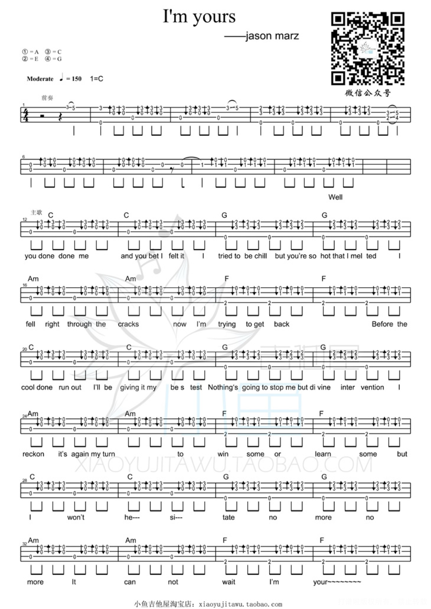 曲谱介绍: Jason Marz《I'm Yours》_C调尤克里里谱
