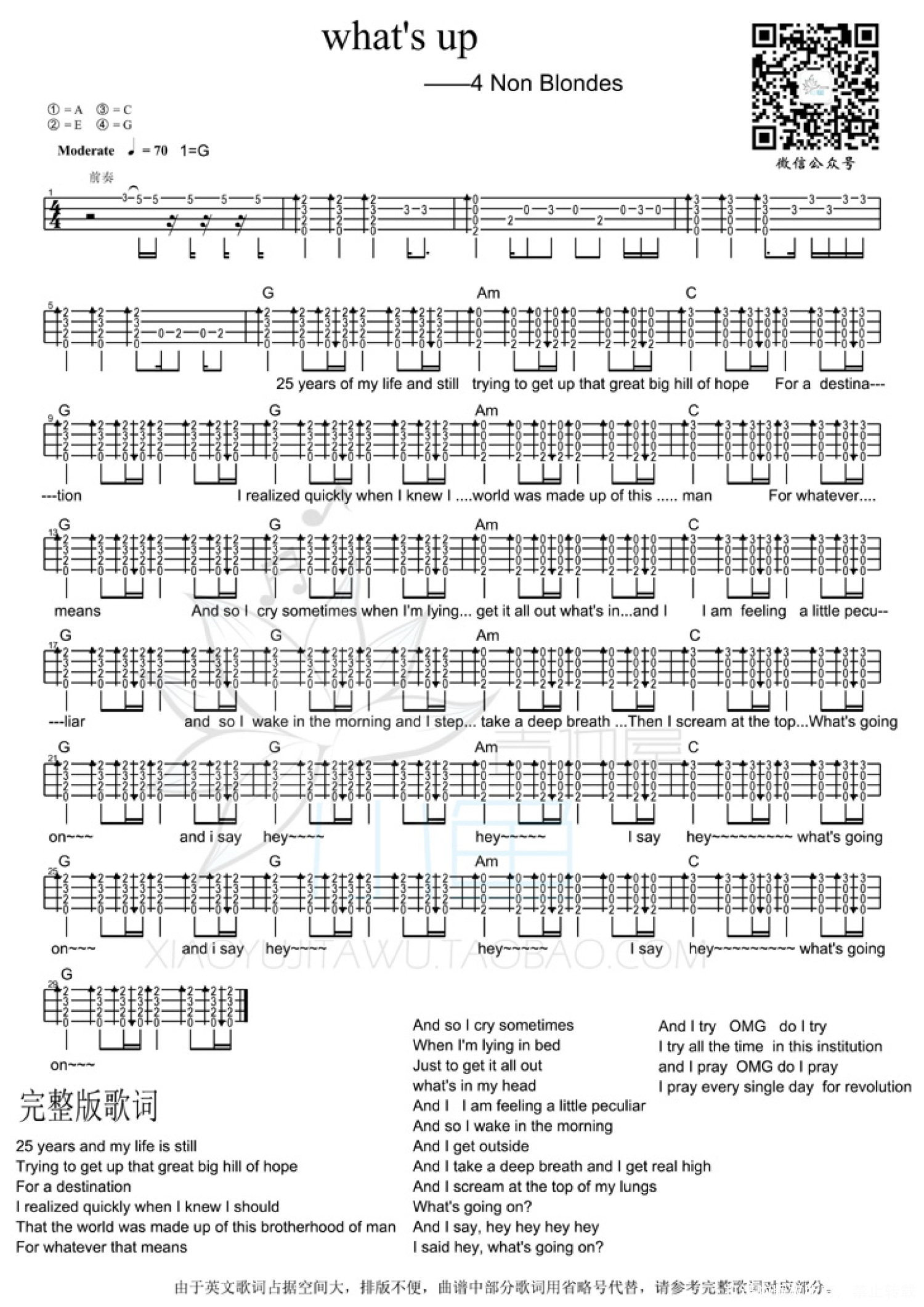 曲谱介绍: 4 Non Blondes《What's Up》_G调尤克里里谱