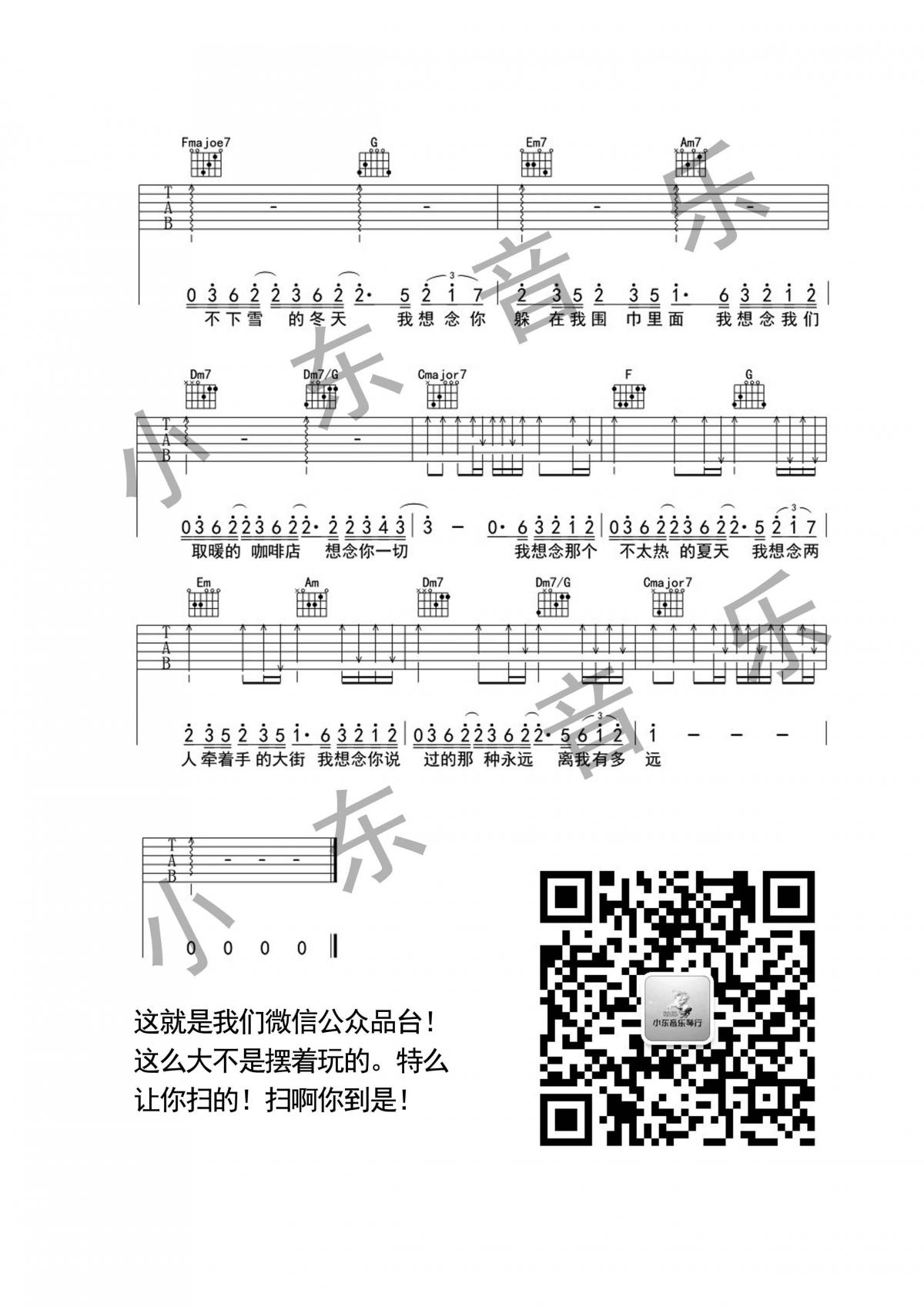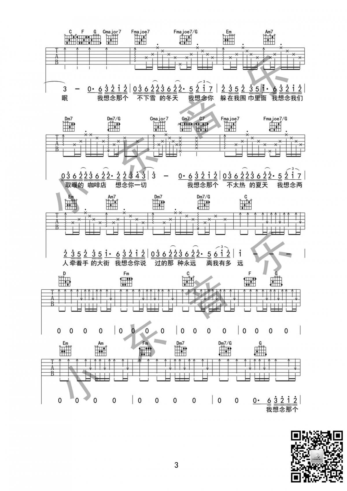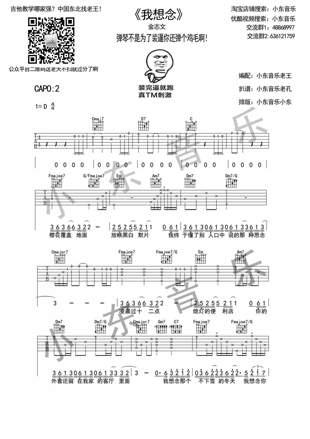 曲谱介绍: 我想念《我想念_D调》吉他弹唱谱,采用D调指法编配,共有4张高清图谱。