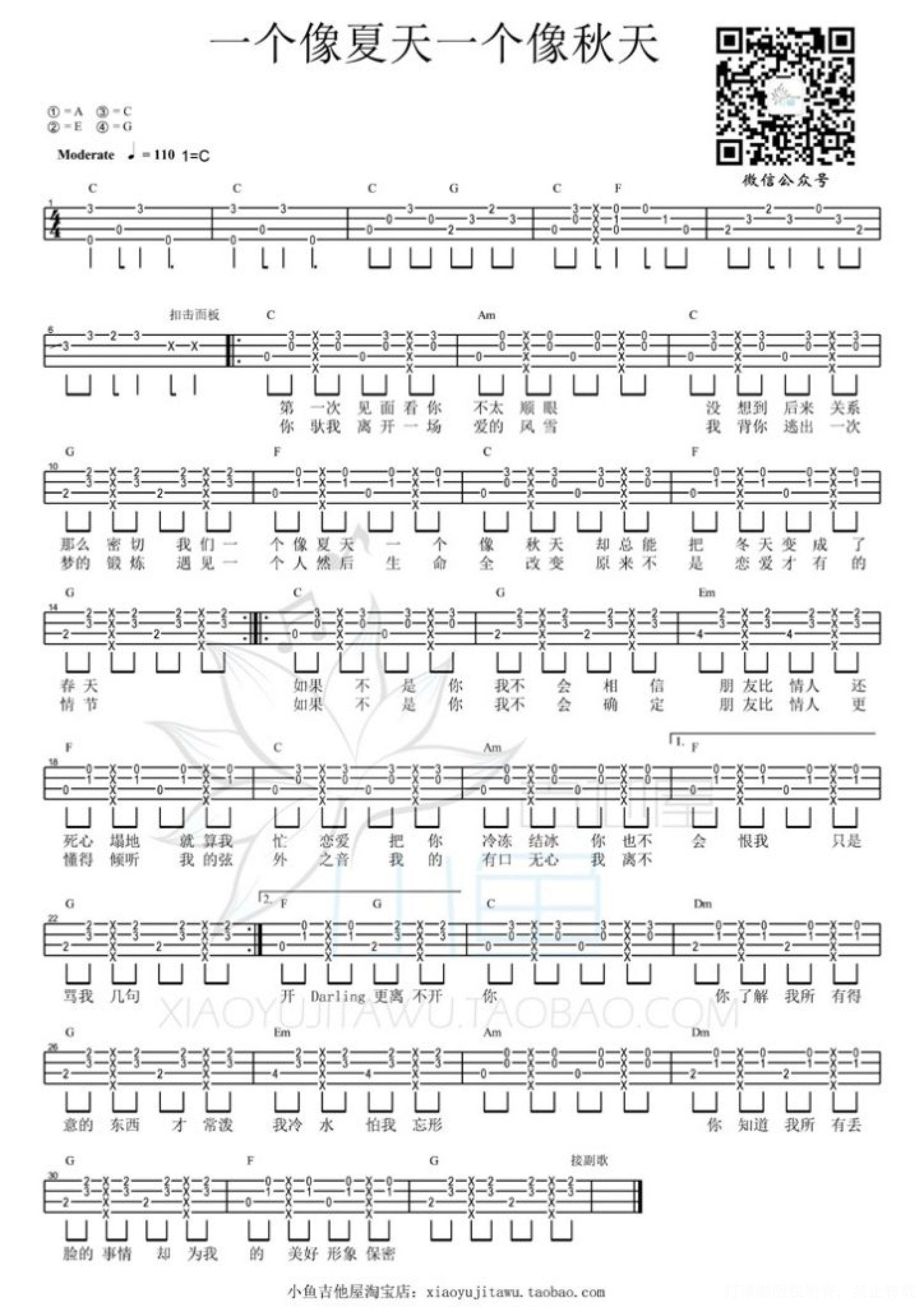 曲谱介绍: 范玮琪《一个像夏天一个像秋天》_C调尤克里里谱