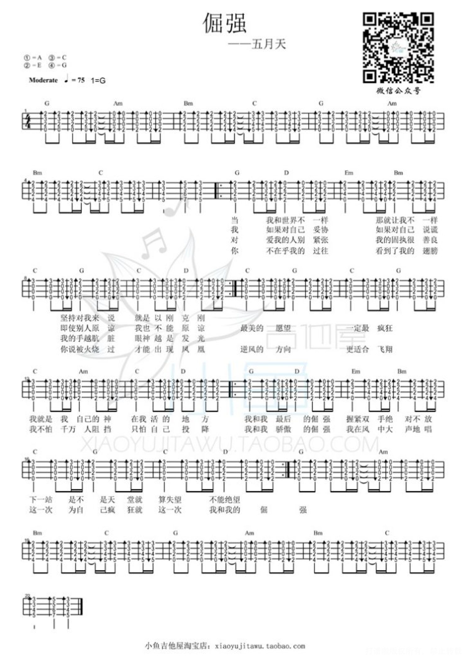 曲谱介绍: 五月天《倔强》_G调尤克里里谱
