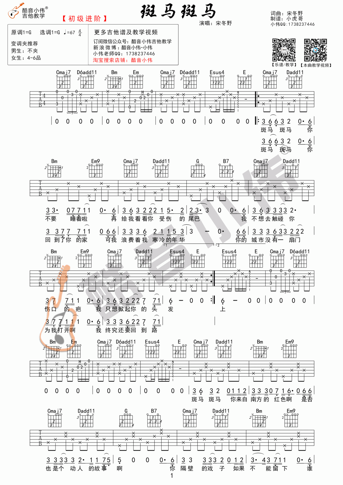 曲谱介绍: 斑马斑马吉他谱,斑马斑马吉他六线谱,原调G调选调C调,女生推荐不夹变调夹。宋冬野的经典民谣讲述了一个流浪汉的爱情故事,充满了恋人之间的深情,低声歌唱,没有一丝浓烈的起伏,却让人感到孤独和孤独。感谢萧伟冷静的声音的编辑与分享。