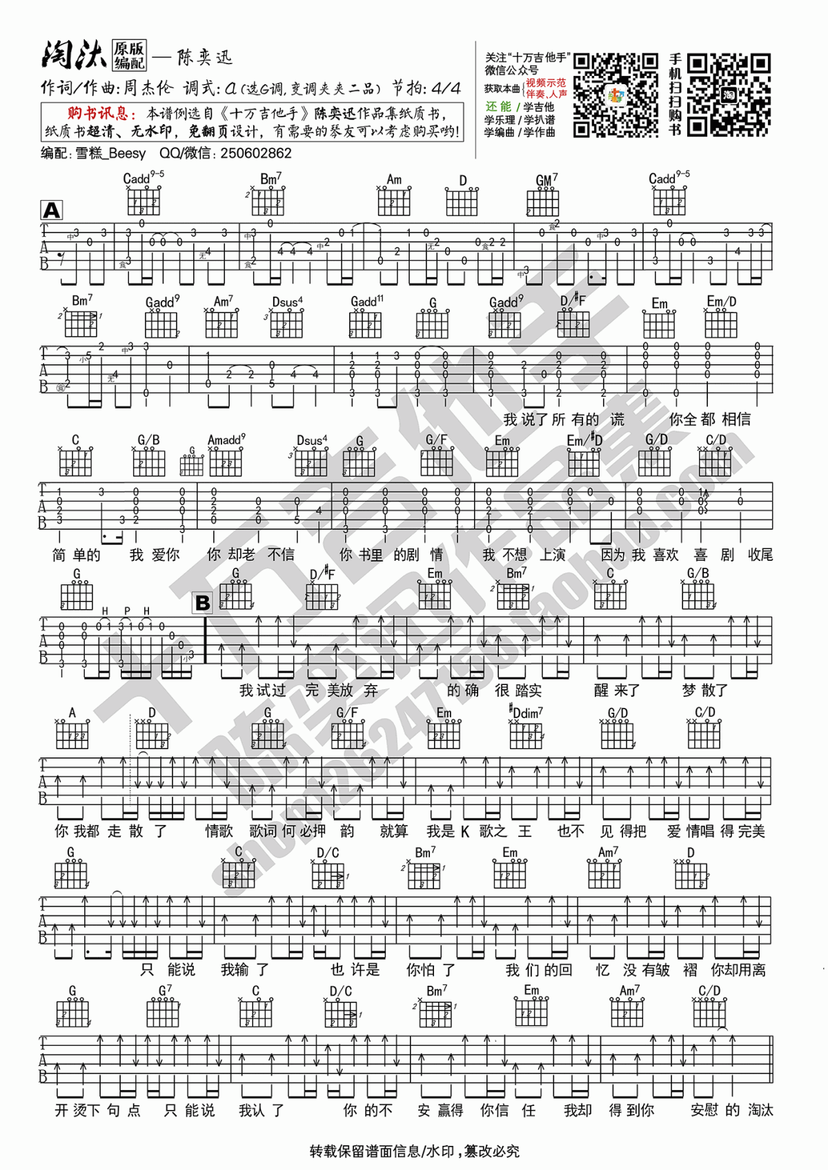曲谱介绍: 陈奕迅《淘汰》吉他弹唱谱,采用G调指法编配原版,共有2张高清图谱,免翻页排版设计。