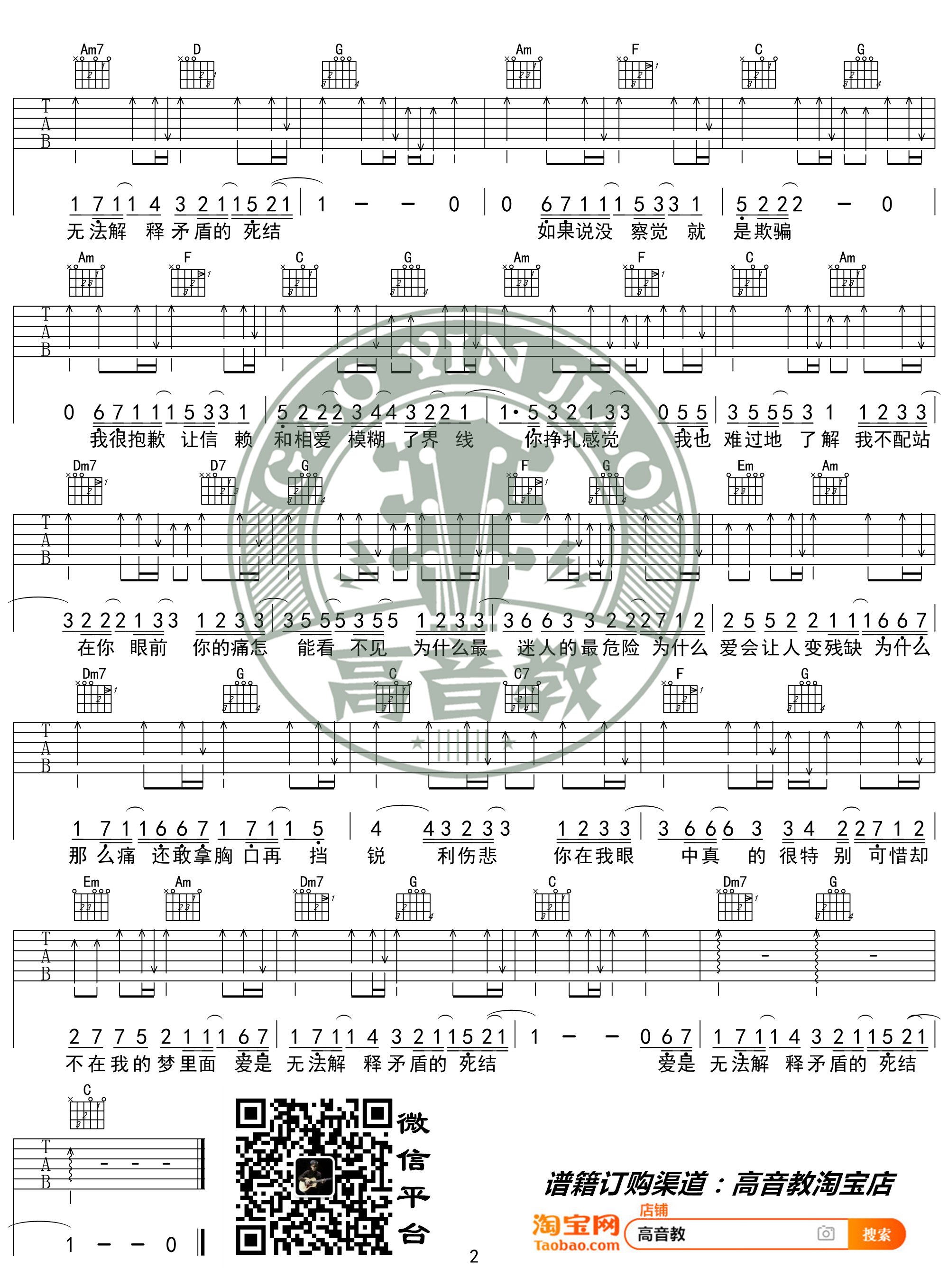 曲谱介绍: 《迷人的危险》吉他弹唱谱,采用G调指法编配,共有2张高清图谱,免翻页排版设计。