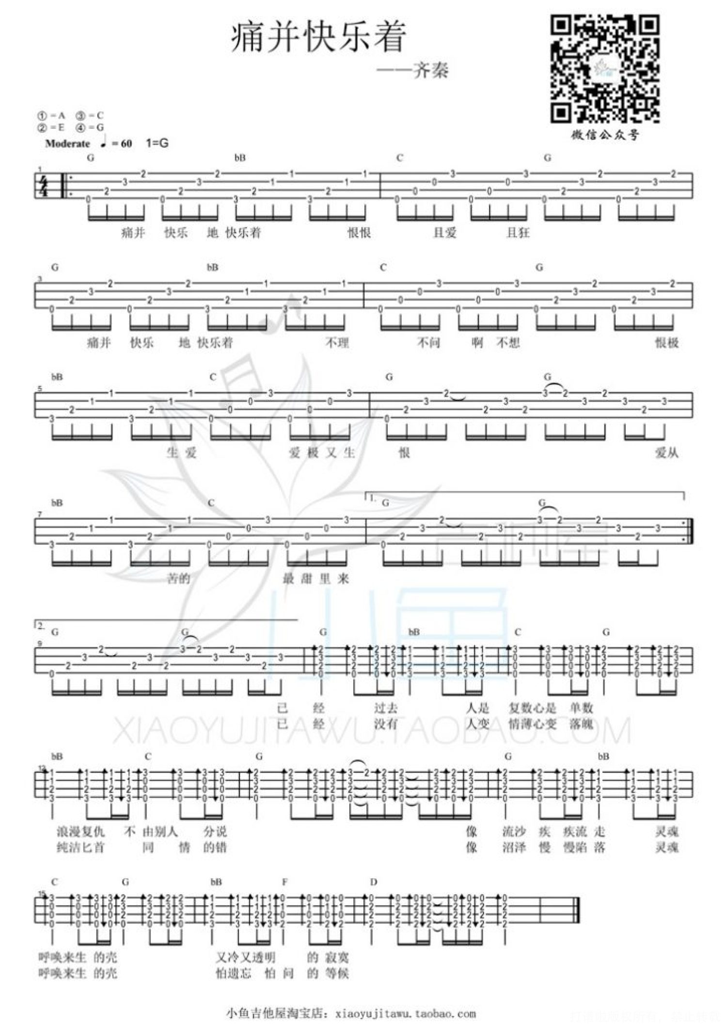 曲谱介绍: 齐秦《痛并快乐着》_G调尤克里里谱