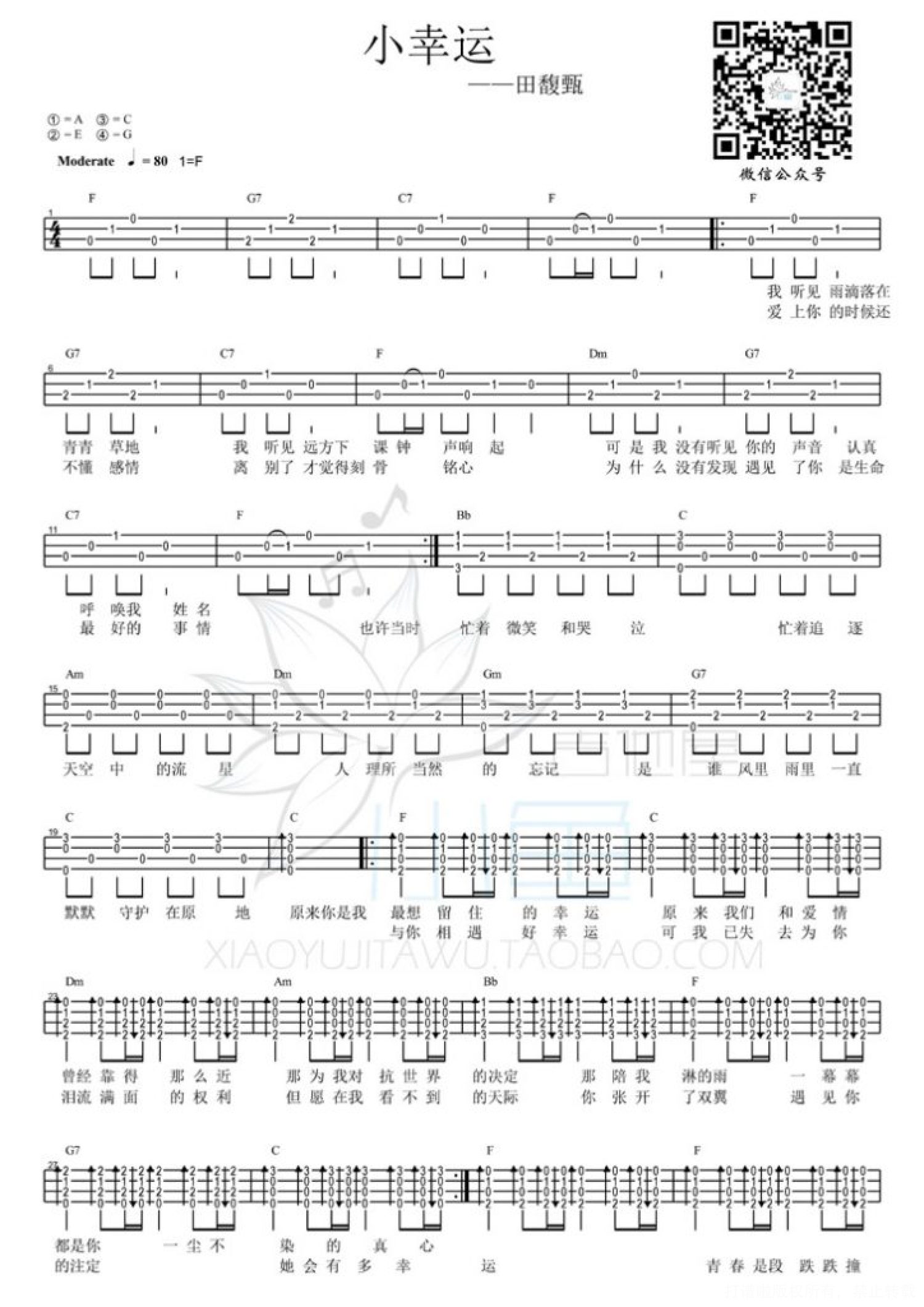 曲谱介绍: 田馥甄《小幸运》_F调尤克里里谱