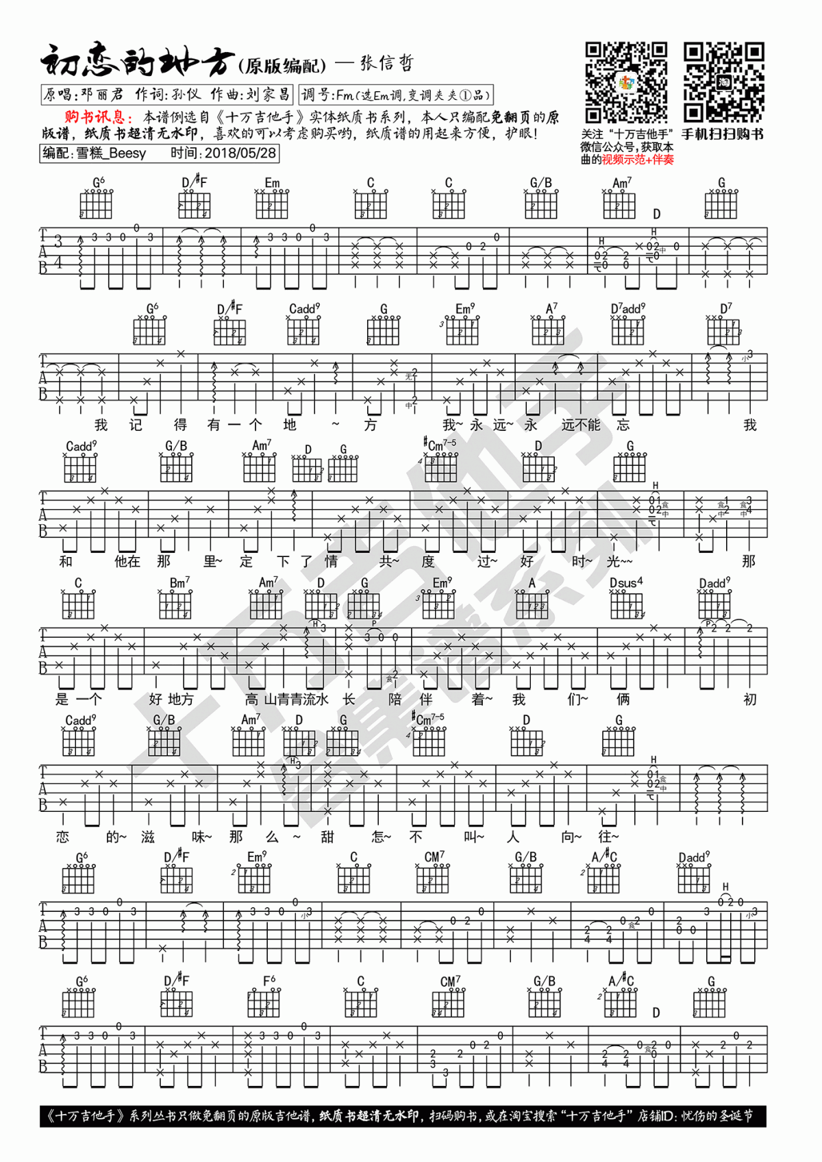 当前位置:琴谱网>吉他弹唱>初恋的地方