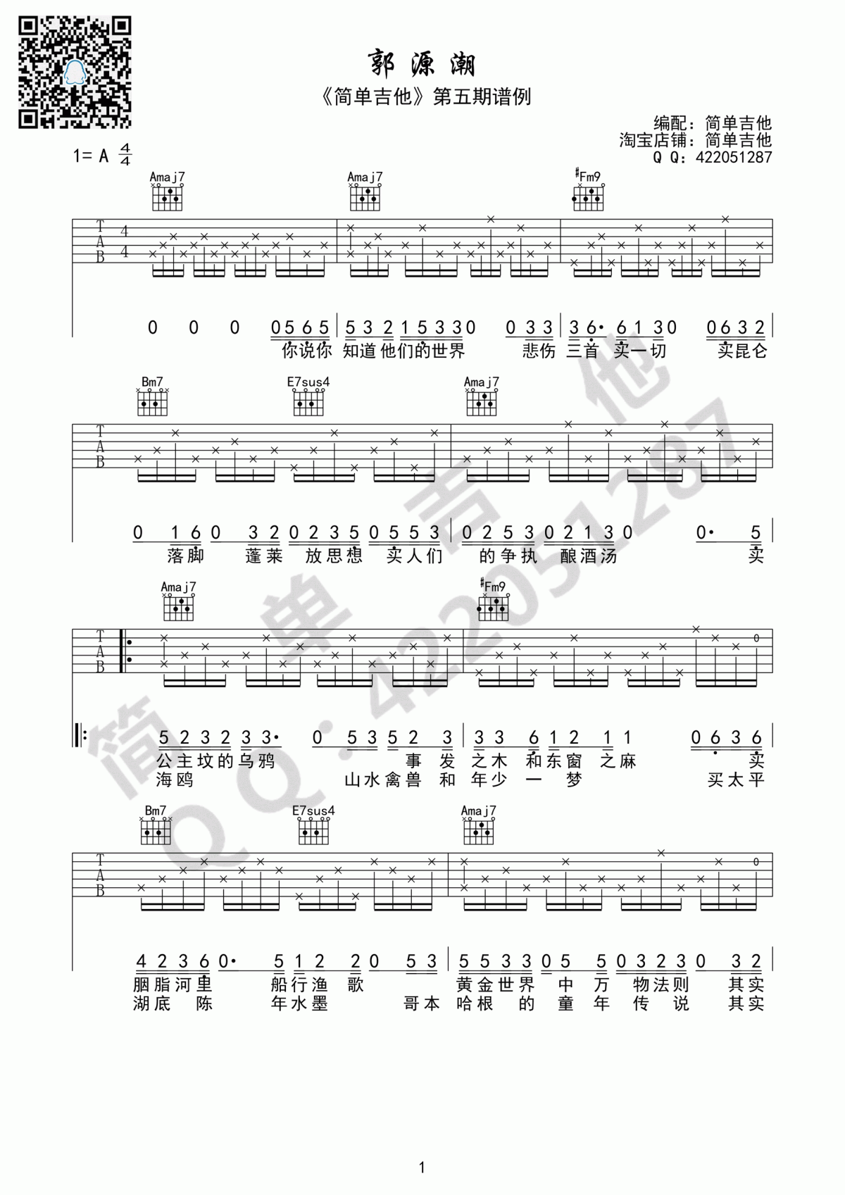 郭源潮吉他谱 - A调吉他弹唱谱
