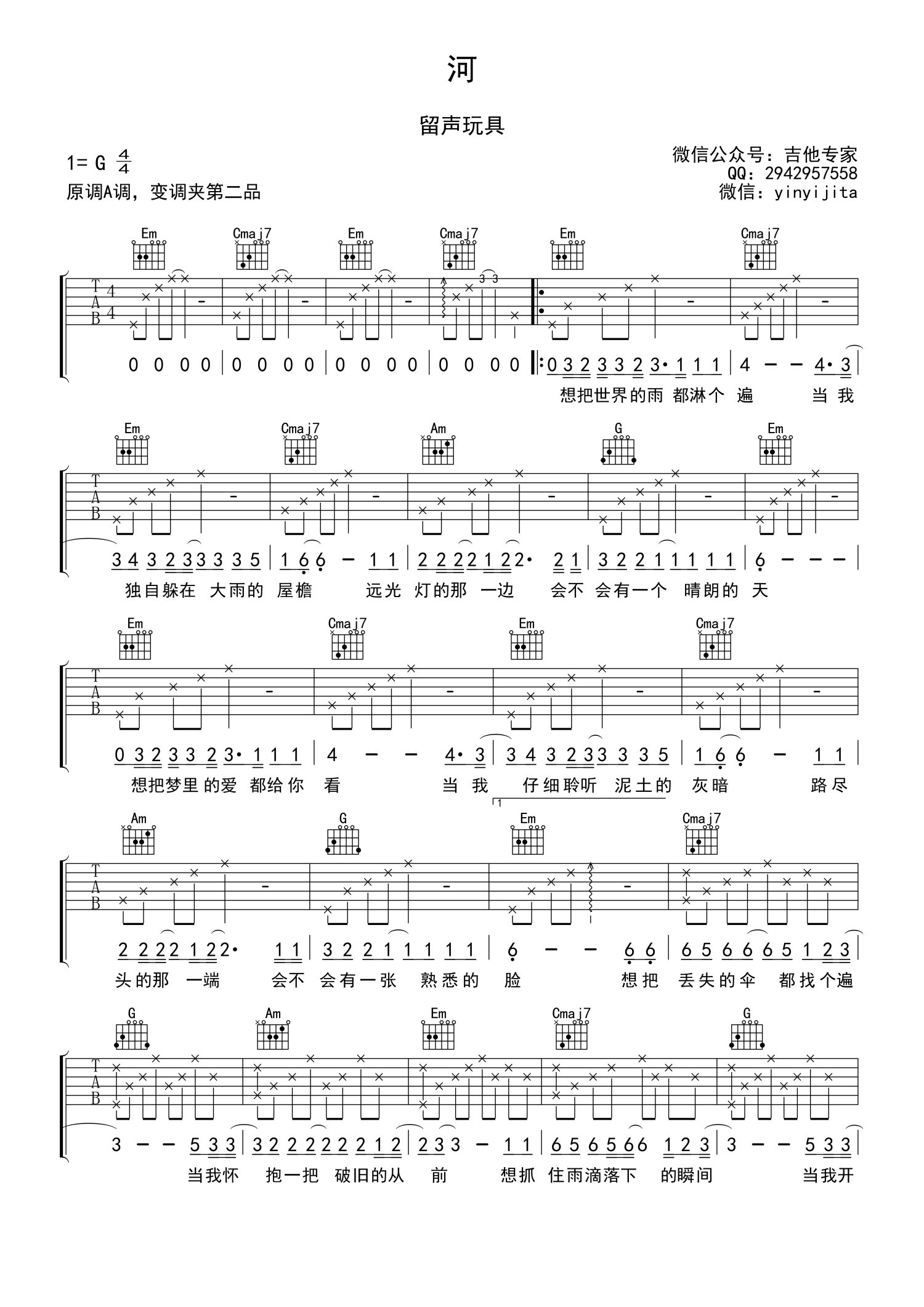 • 河吉他谱 - 留声玩具 - G调吉他弹唱谱第1张