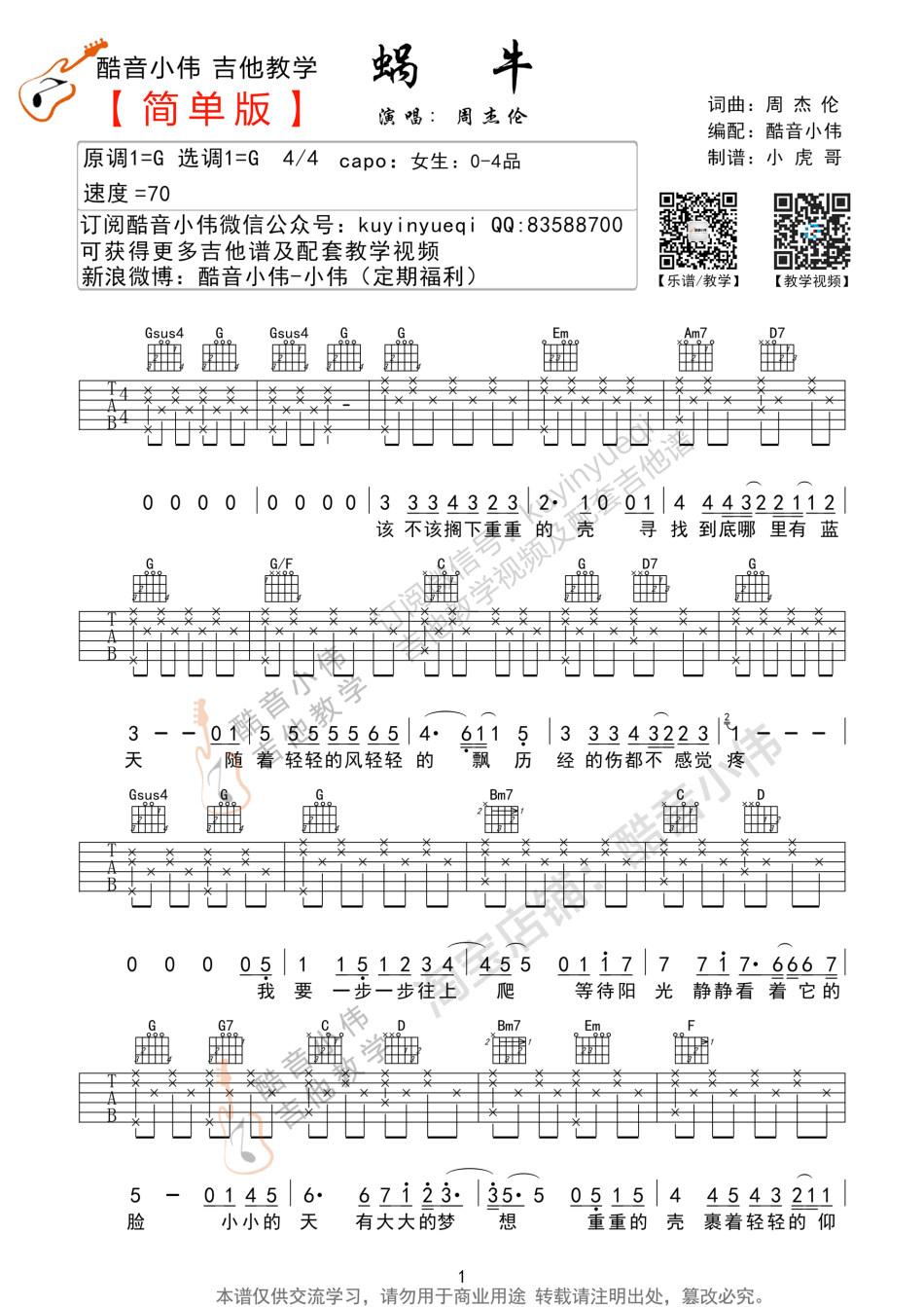 蜗牛_G调吉他谱 - 蜗牛 - G调吉他弹唱谱