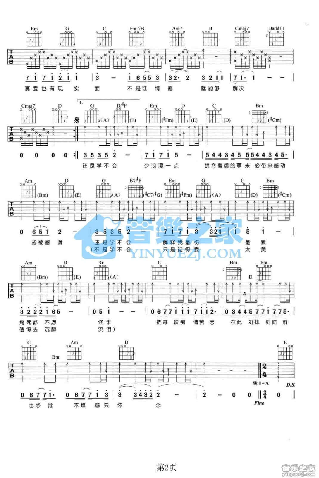 曲谱介绍: 学不会吉他谱_林俊杰_《学不会》G调弹唱六线谱_高清图片谱分享,《学不会》是由林俊杰作曲并演唱的歌曲,这首歌曲是在林俊杰情绪低落的时候创作的,借这首歌曲表达自己的想法和感情。