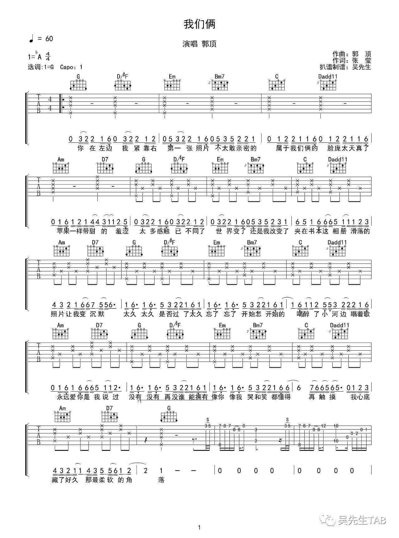 我们俩吉他谱 - 郭顶 - G调吉他弹唱谱