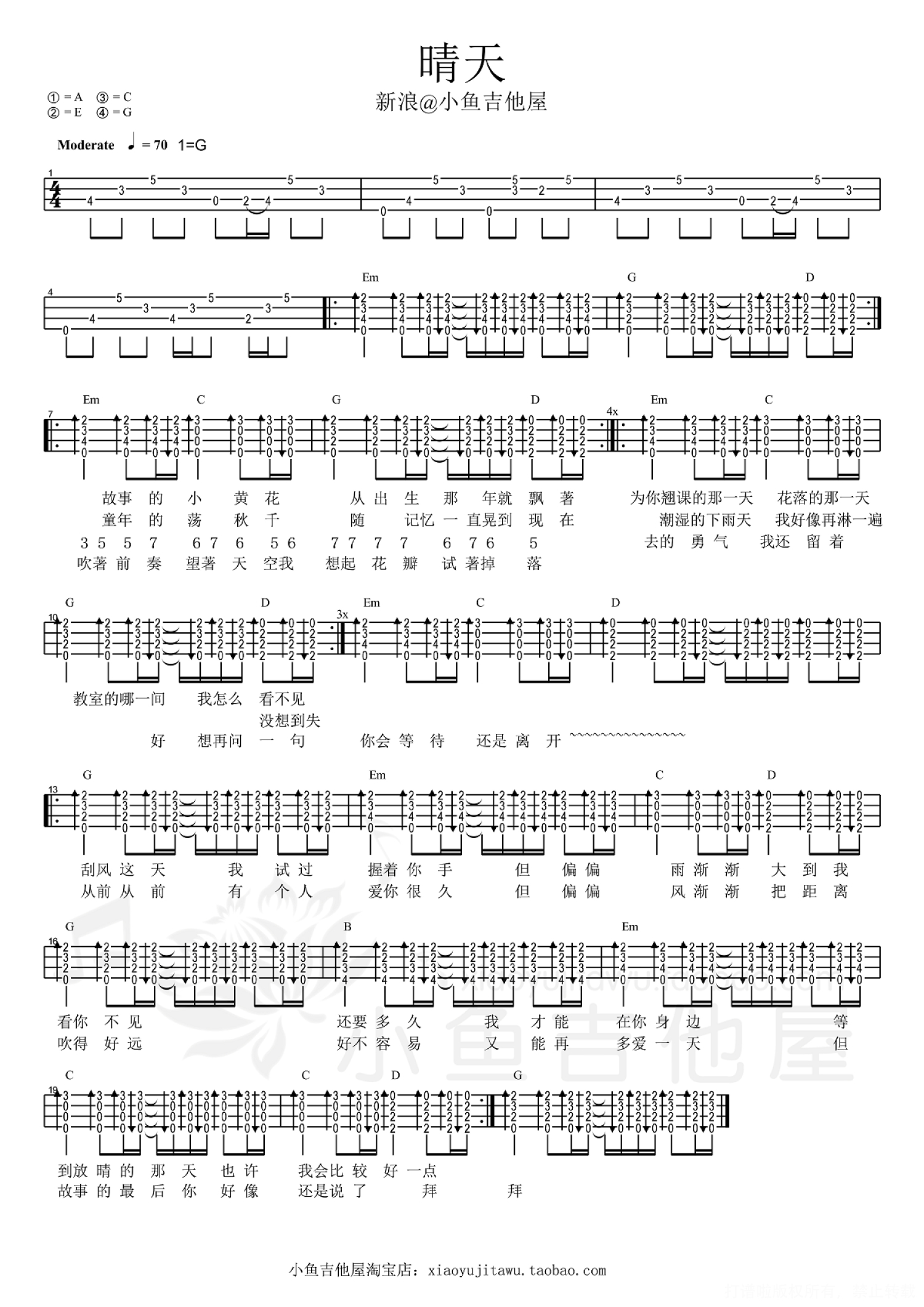 当前位置:琴谱网>尤克里里>晴天