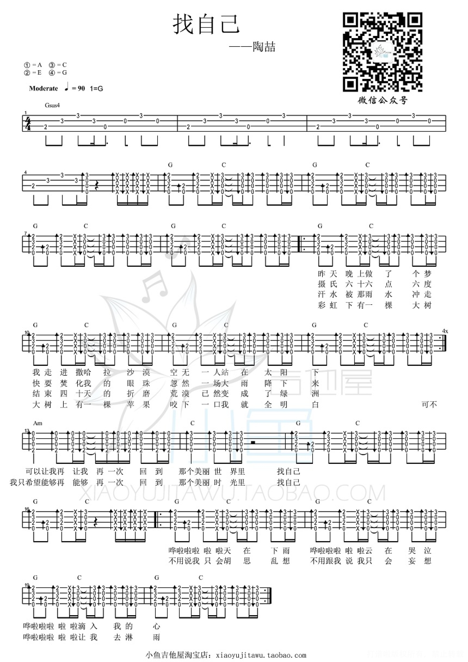 曲谱介绍: 陶喆《找自己》_G调尤克里里谱