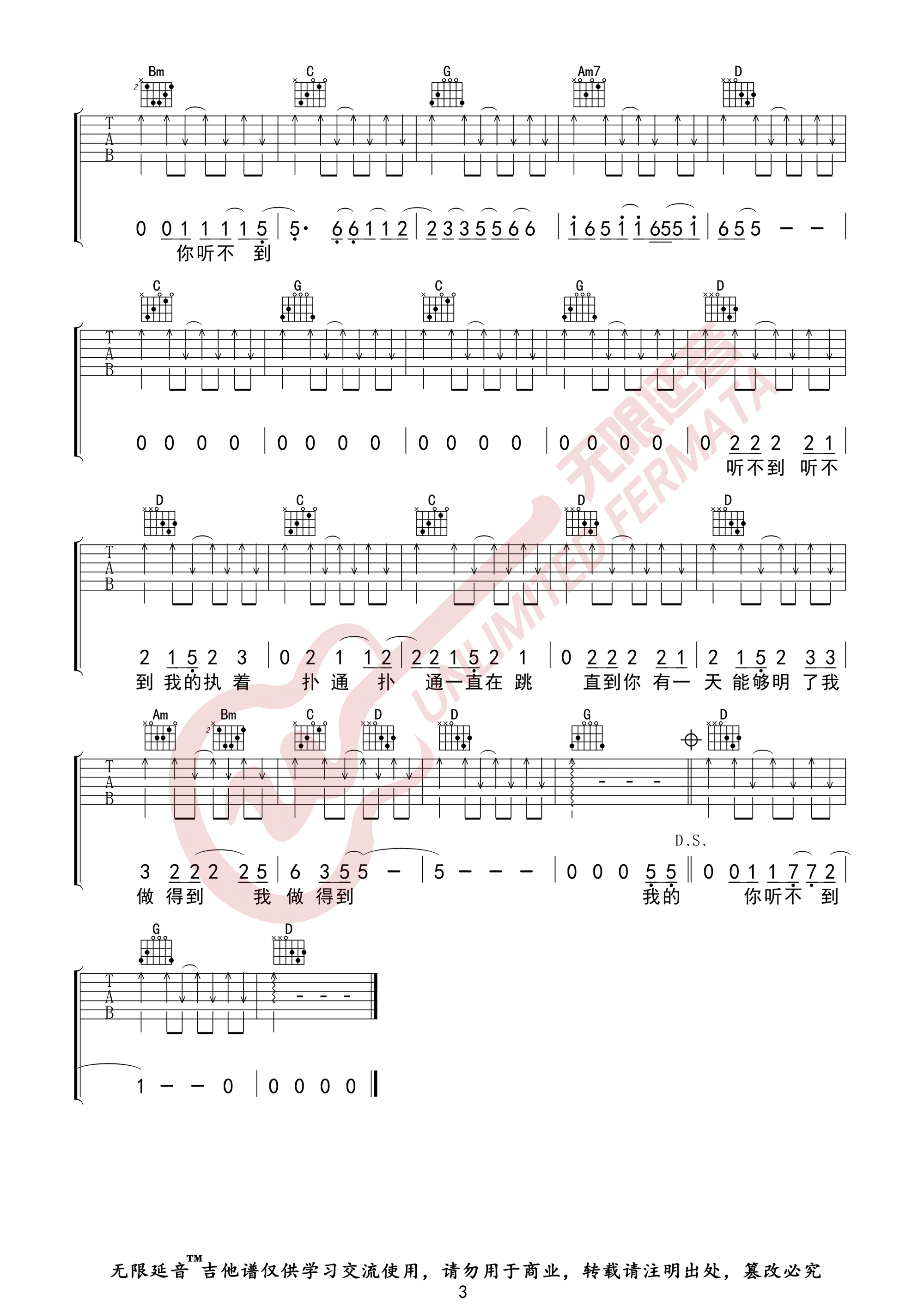 当前位置:琴谱网>吉他弹唱>听不到