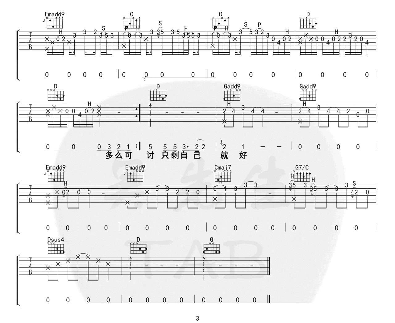 曲谱介绍: 像鱼吉他谱_王贰浪_《像鱼》G调弹唱六线谱_高清图片谱分享,《像鱼》是由王贰浪演唱的一首歌。每个人都有所谓的心事,当试着将心事代入某首歌时,却发现自己当初是多么的幼稚。而在对方看来,这样的幼稚只是自己一个人在坚持着。 此版本的曲谱来源于吴先生扒谱制谱,歌曲原调为B调,这里采用了G调指法进行编配,演唱时夹变调夹4品回到原调。曲谱编配有一定难度,前奏以几个泛音开头,后面的一些节奏有些不好把握,在和弦方面相对来说较为简单。 像鱼吉他谱_王贰浪_《像鱼》G调弹唱六线谱_高清图片谱1:
