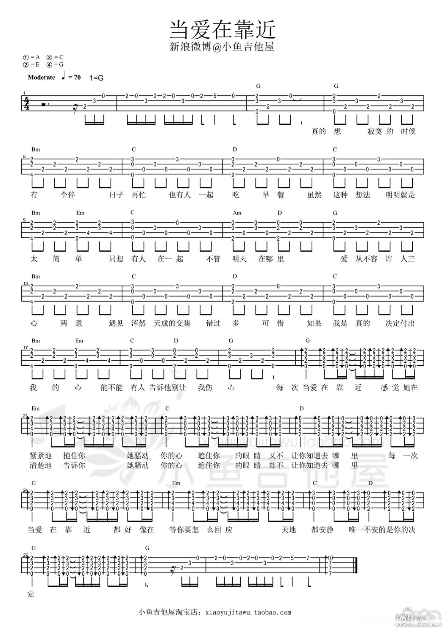 当前位置:琴谱网>尤克里里>当爱在靠近