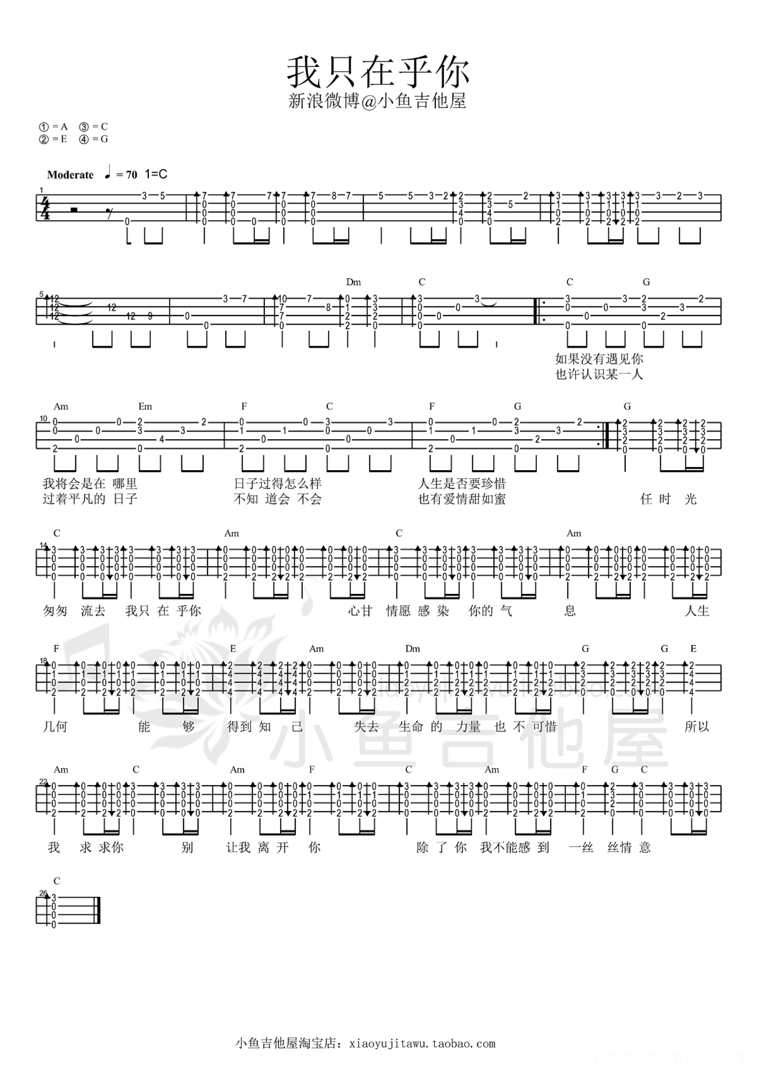 琴谱网为您精心推荐 我只在乎你 高清图谱