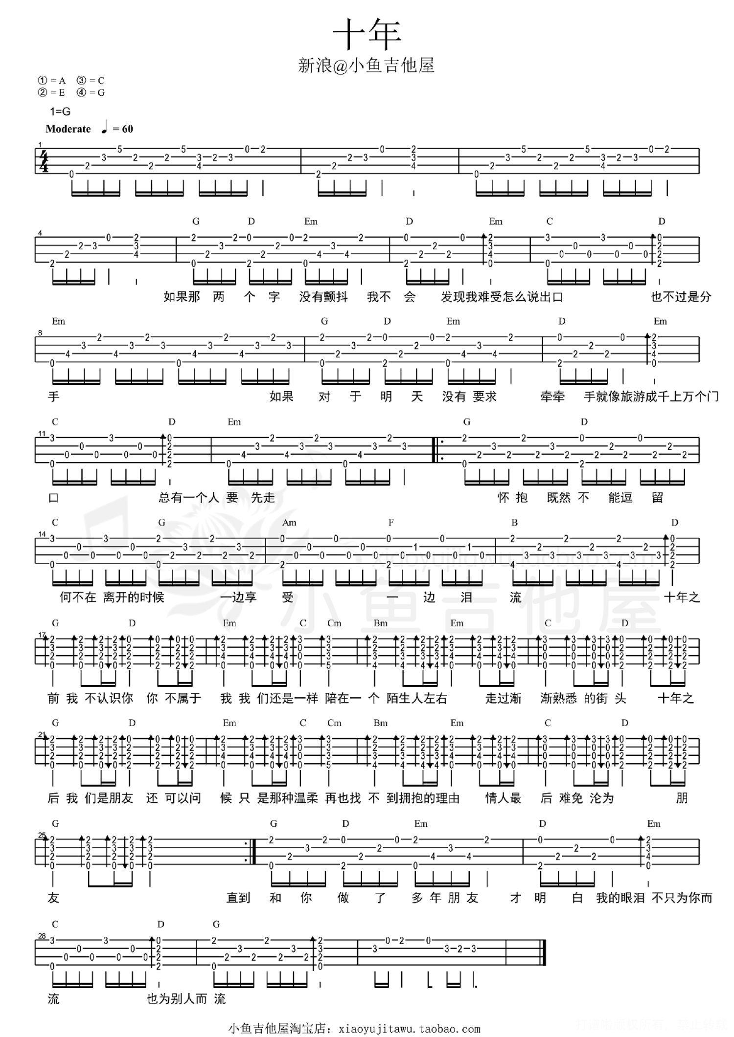 当前位置:琴谱网>尤克里里>十年