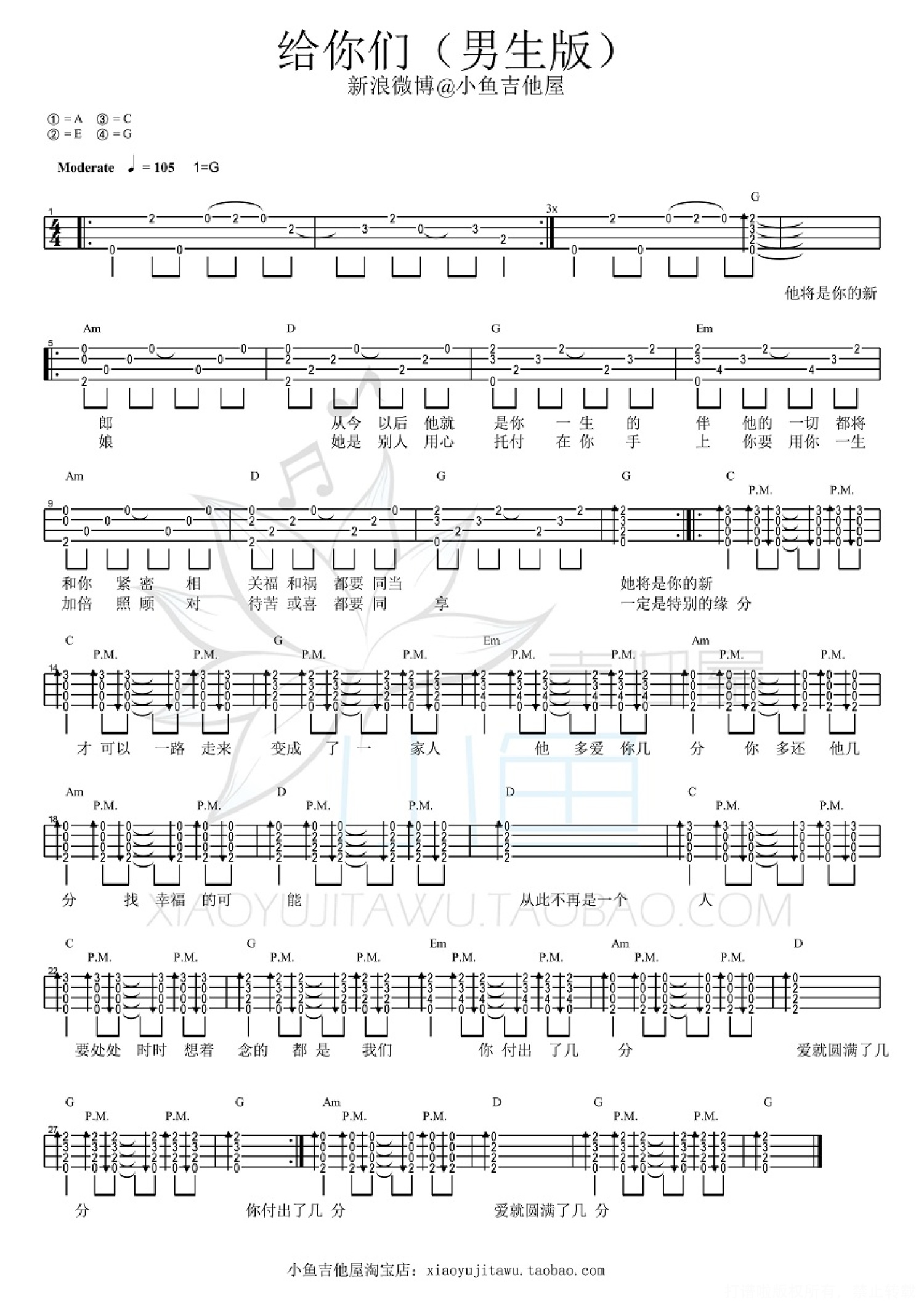 曲谱介绍: 张宇《给你们》_G调尤克里里谱_男生版