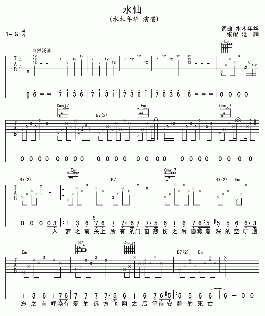 水木年华 水仙吉他谱 - 水木年华 - G调吉他弹唱谱