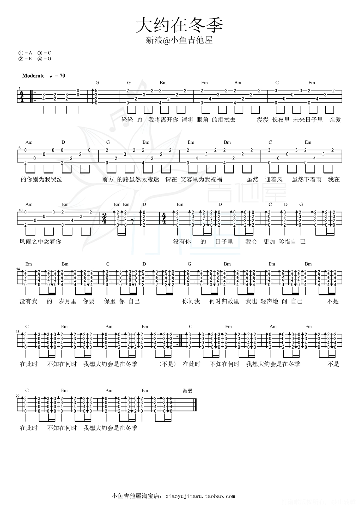 曲谱介绍: 齐秦《大约在冬季》_G调尤克里里谱
