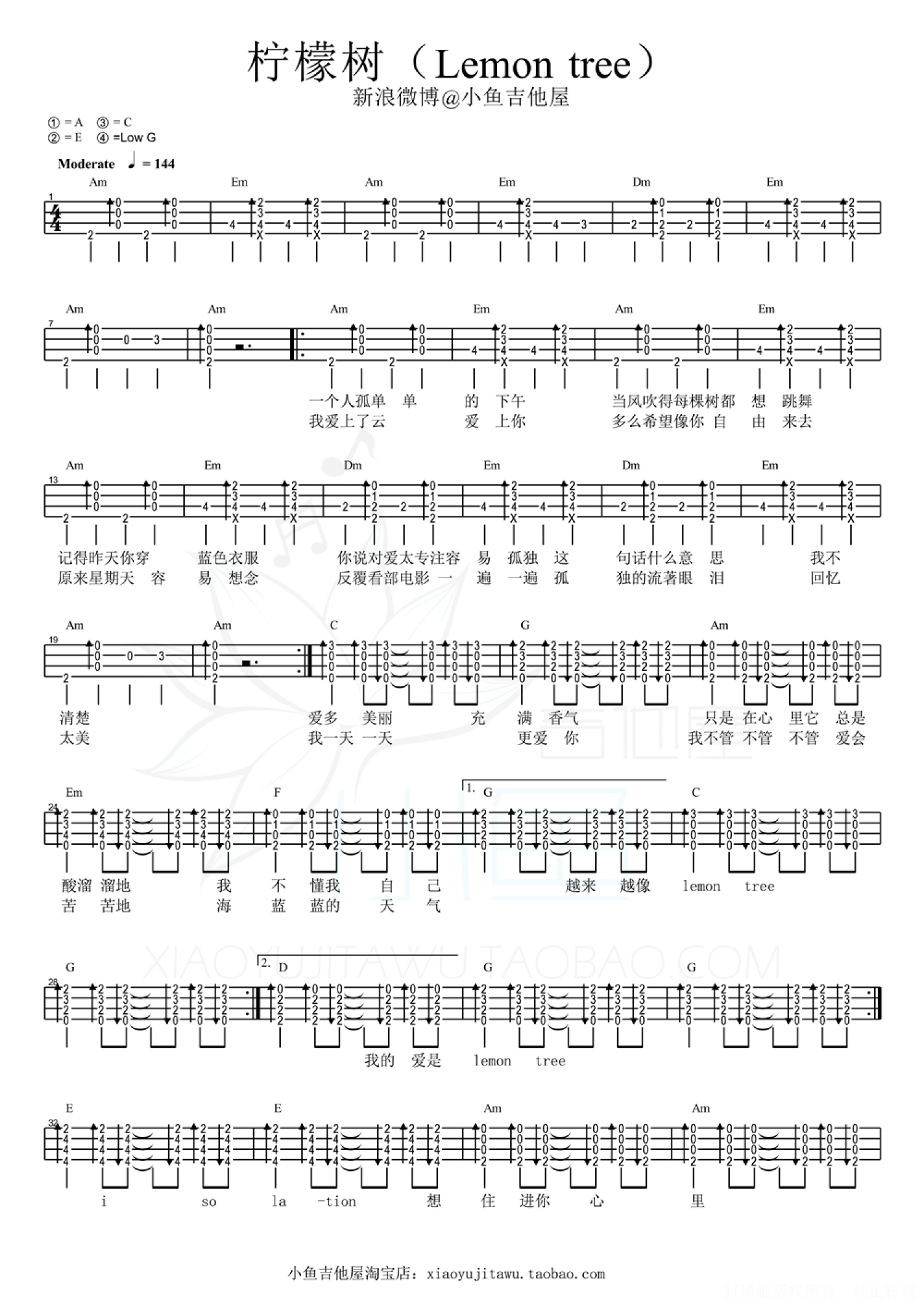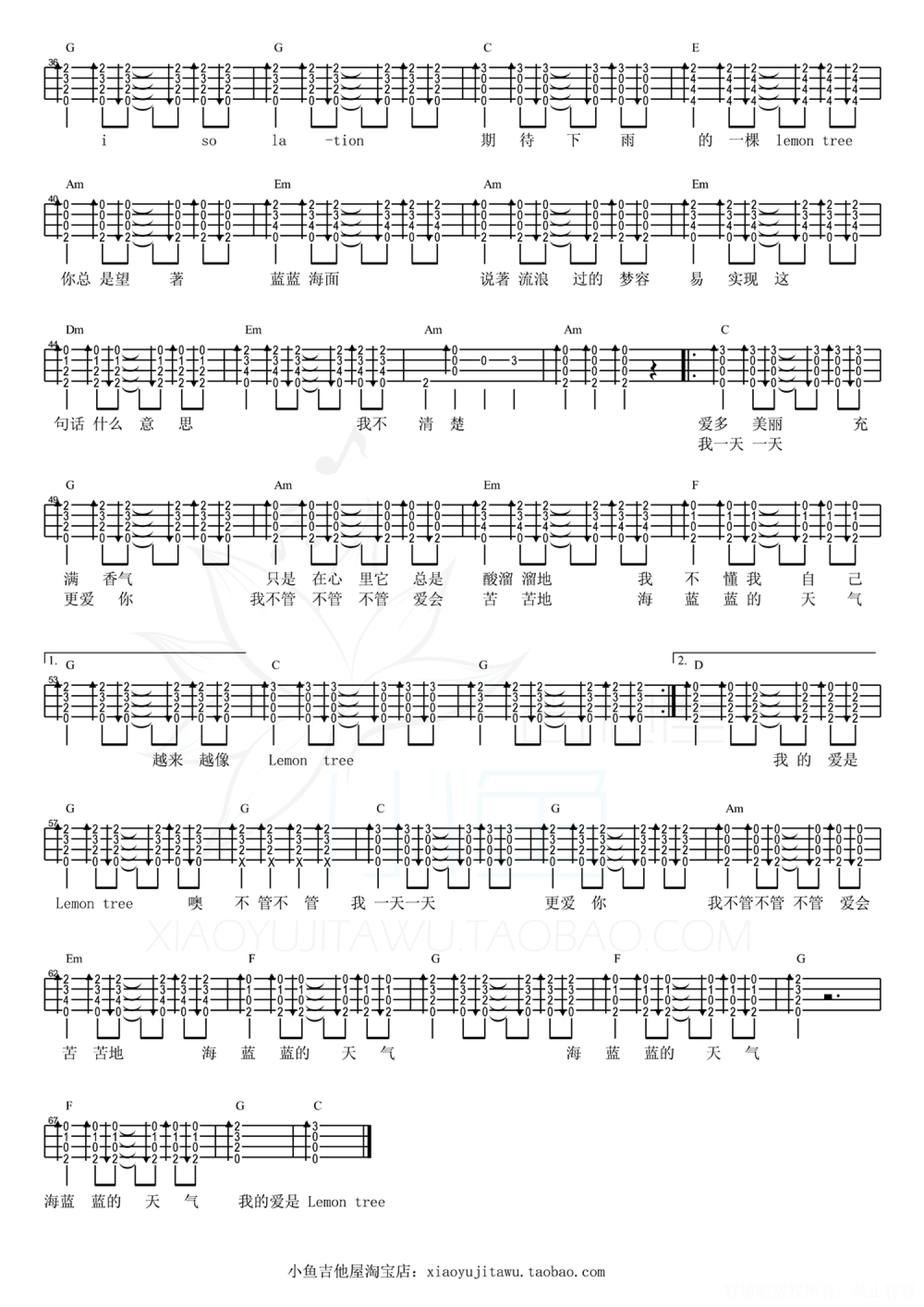 曲谱介绍: 柠檬树尤克里里小鱼教学视频