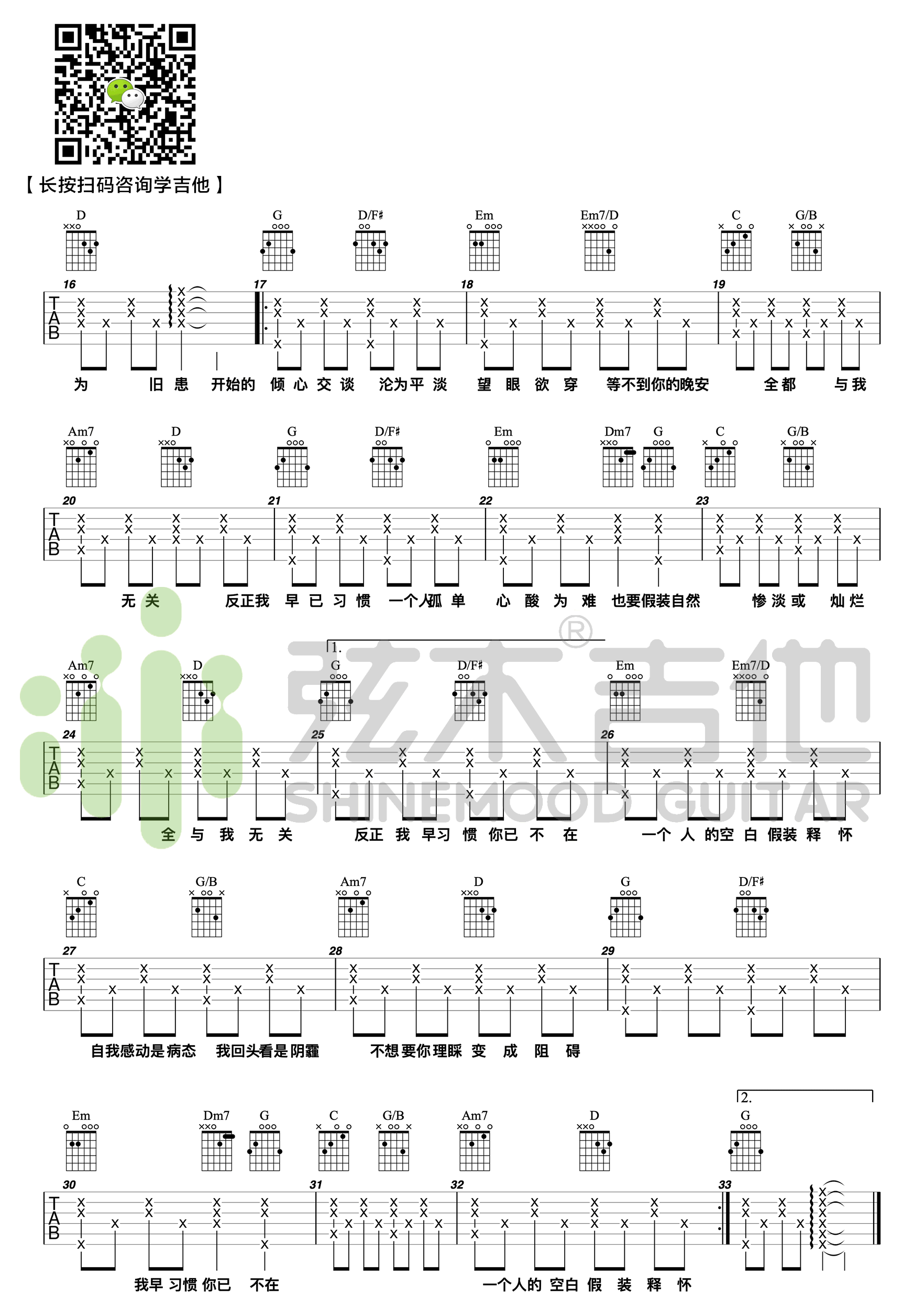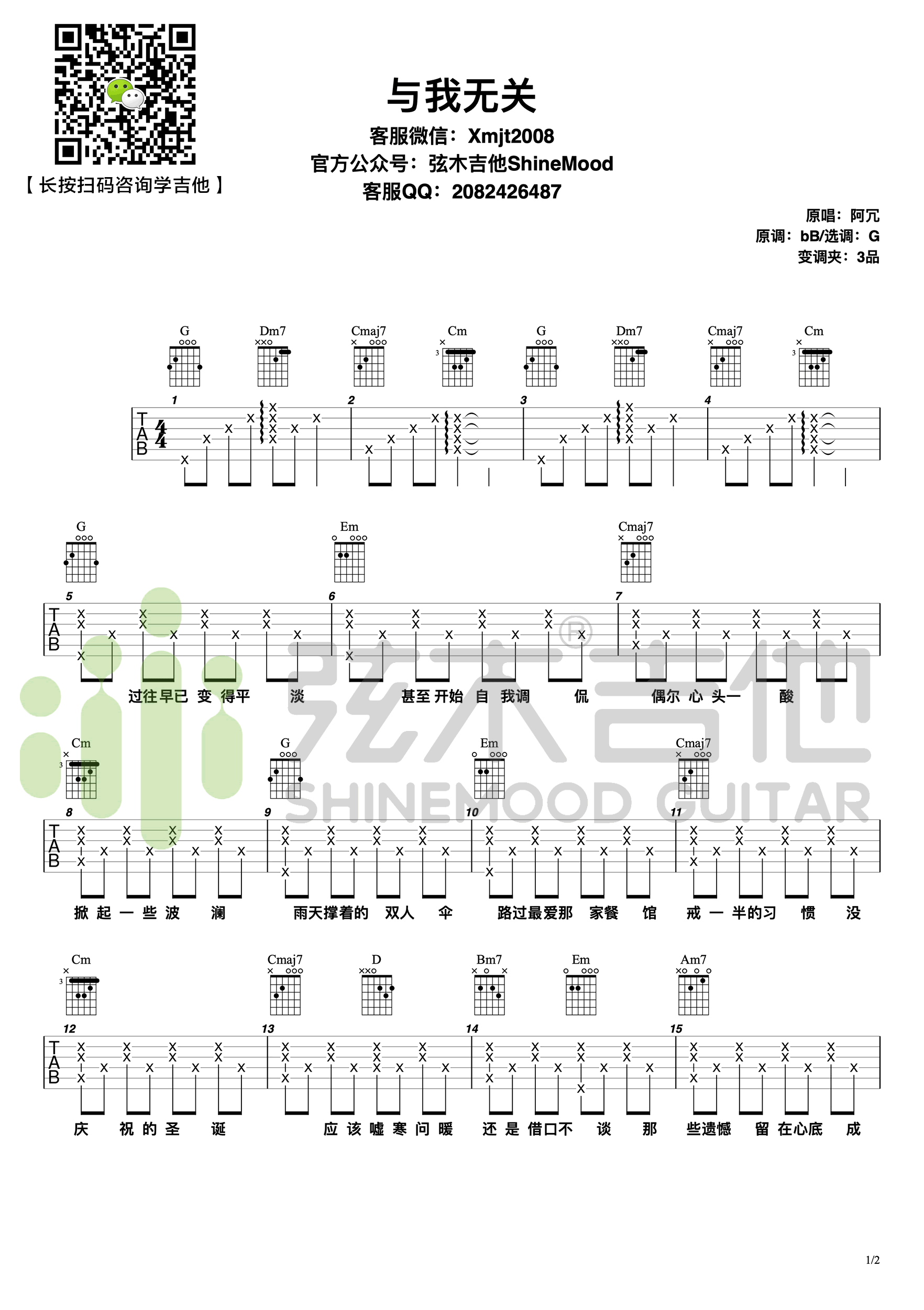 曲谱介绍: 与我无关吉他谱_阿冗_《与我无关》G调弹唱谱_高清六线谱分享,《与我无关》是由阿冗演唱的一首歌。