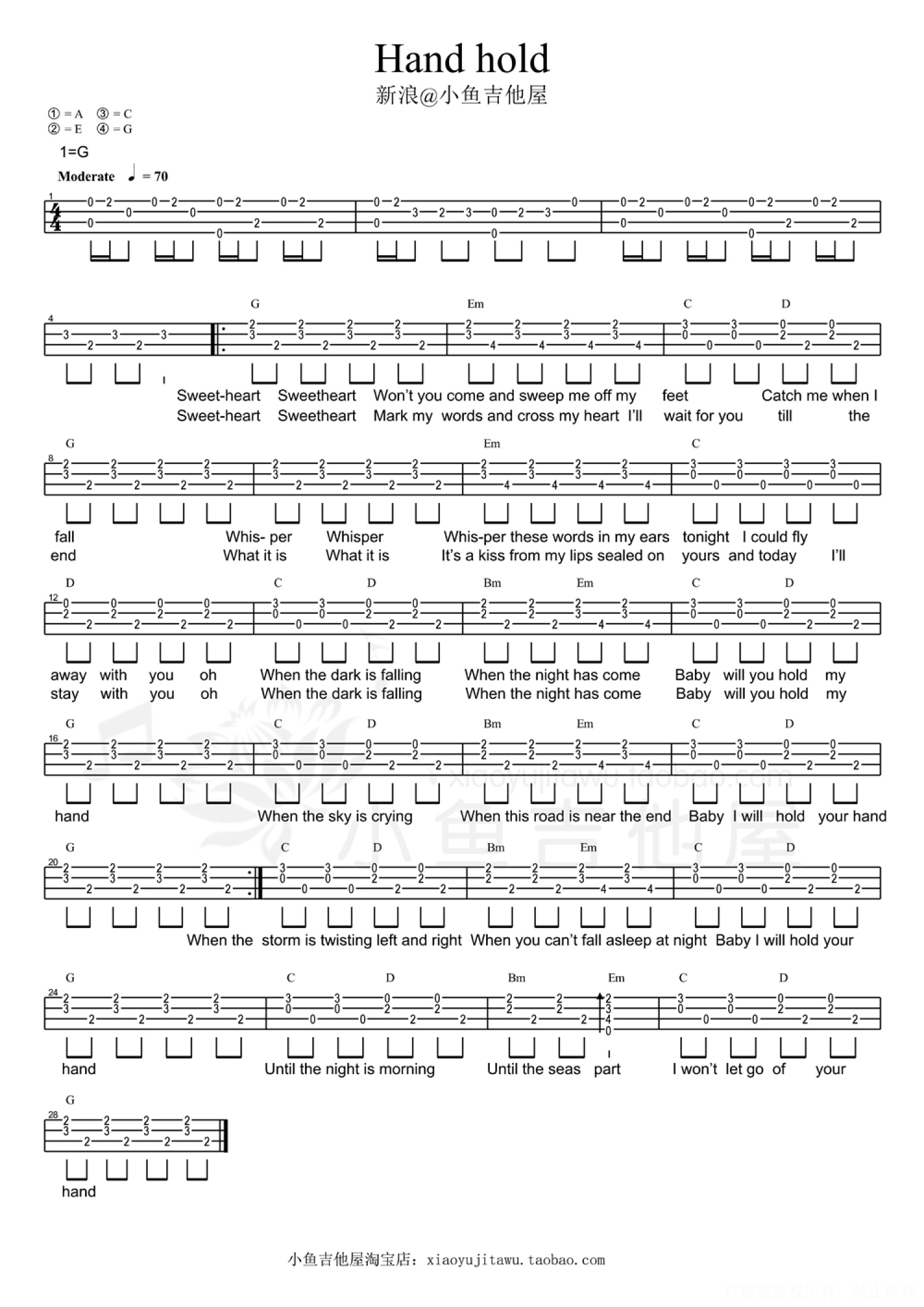 当前位置:琴谱网>尤克里里>Hand hold