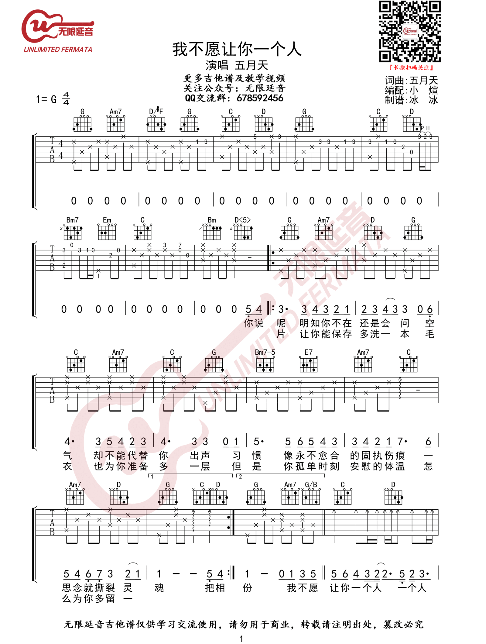 我不愿让你一个人吉他谱 - 五月天 - G调吉他弹唱谱 - 原版