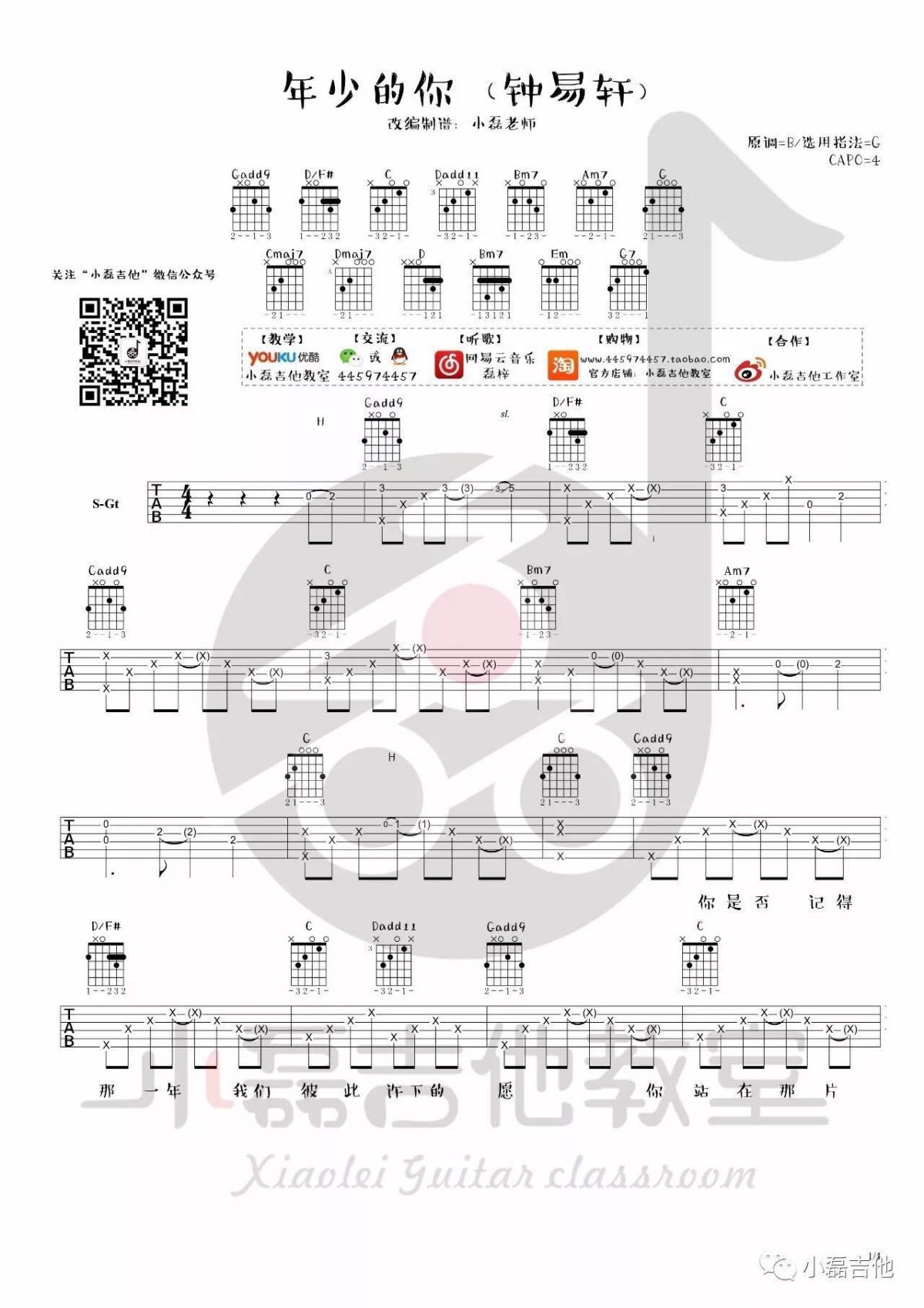 曲谱介绍: 年少的你《年少的你_G调》吉他弹唱谱,采用G调指法编配,共有4张高清图谱。