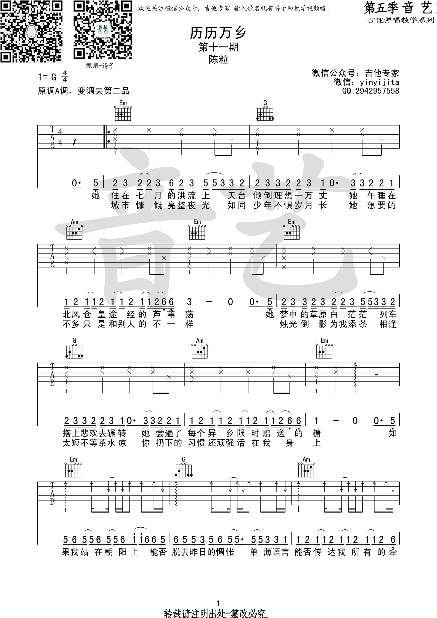 当前位置:琴谱网>吉他弹唱>历历万乡
