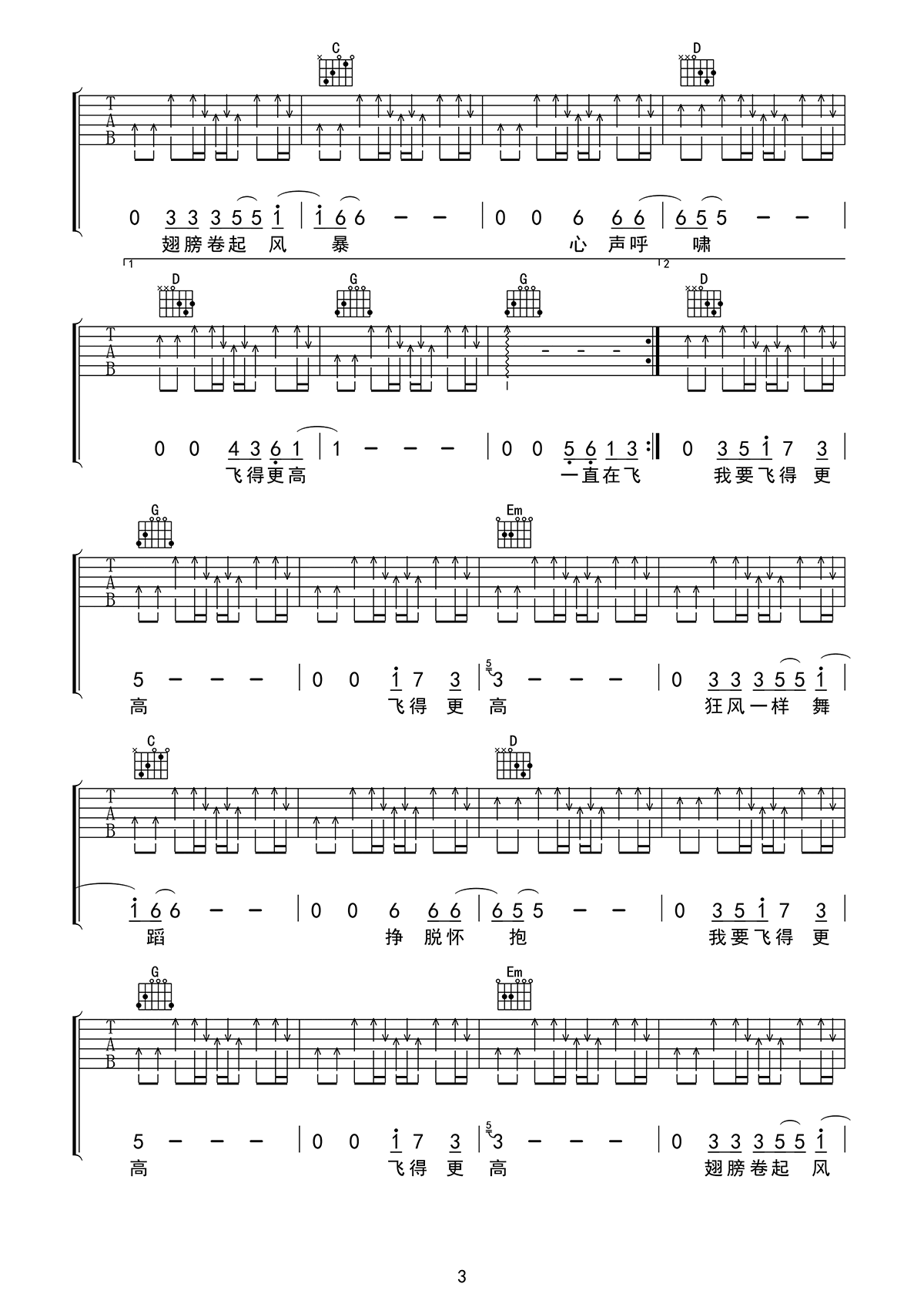 当前位置:琴谱网>吉他弹唱>飞得更高