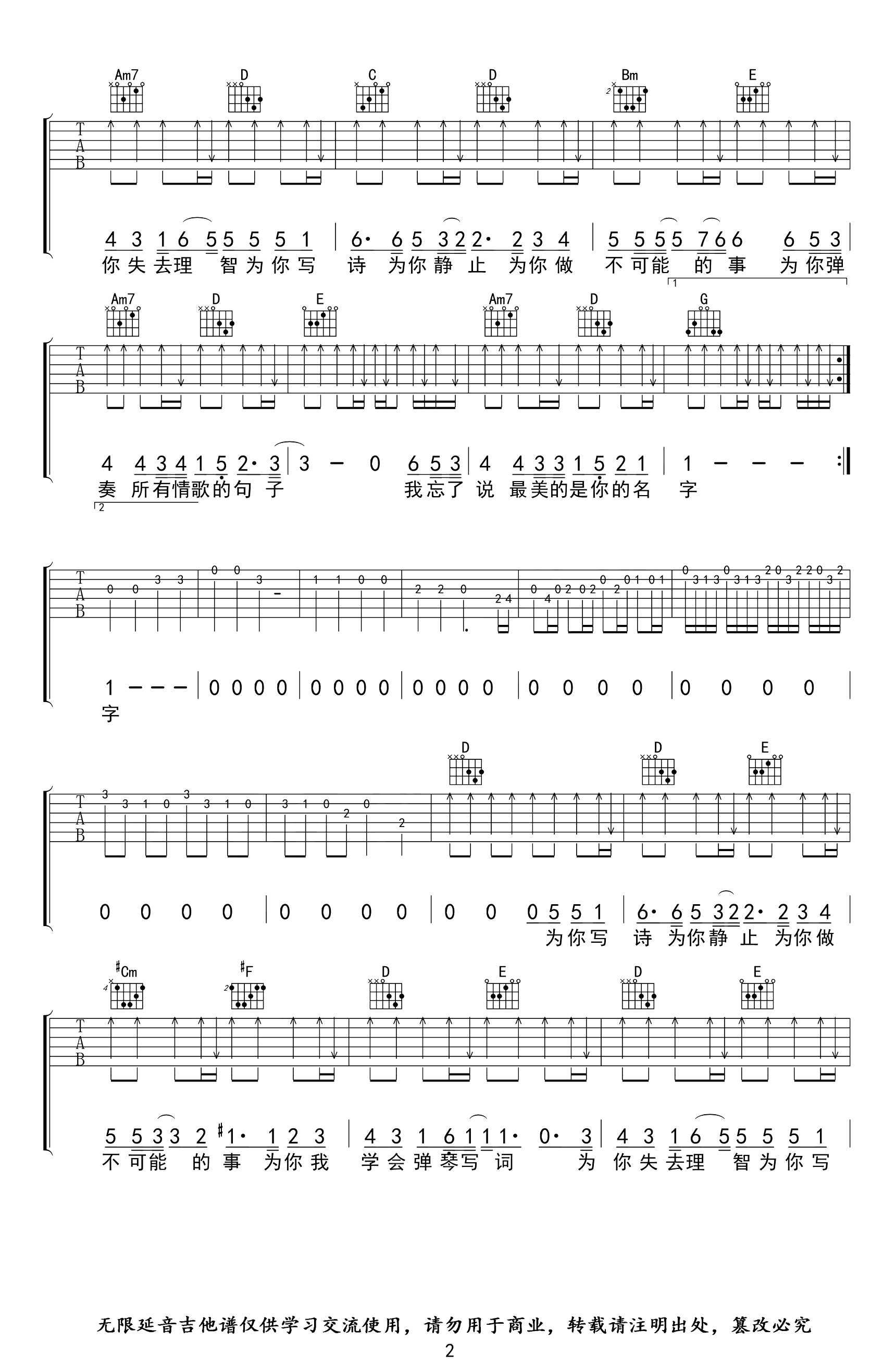 当前位置:琴谱网>吉他弹唱>为你写诗