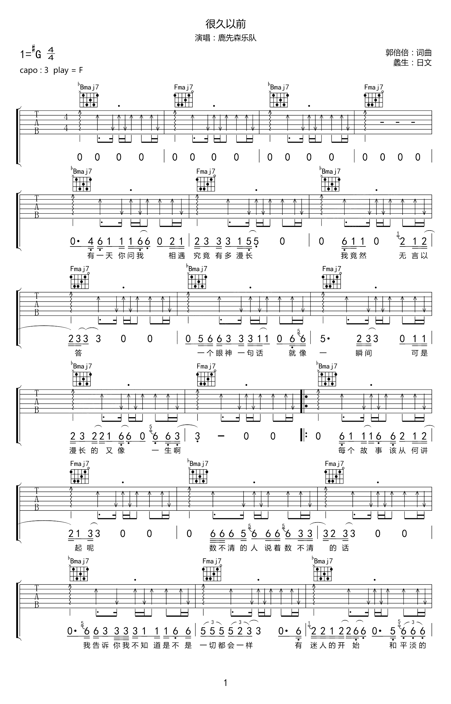 很久以前吉他谱 - 鹿先森乐队 - F调吉他弹唱谱 - 原版